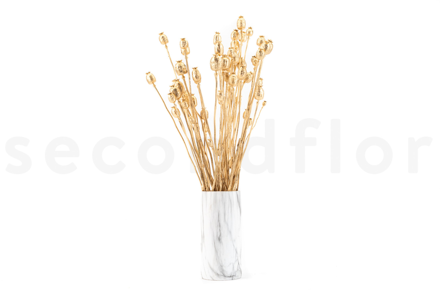Einmal getrocknet, behält der Mohn seine robuste Struktur und seine runde Form. Mit einem goldenen Finish versehen, wird er zu einem echten botanischen Schmuckstück. Weder zerbrechlich noch aufdringlich, überdauert der goldene Mohn die Jahreszeiten und fügt sich harmonisch in jeden Stil ein – von minimalistischen Arrangements bis hin zu opulenten Dekoren.