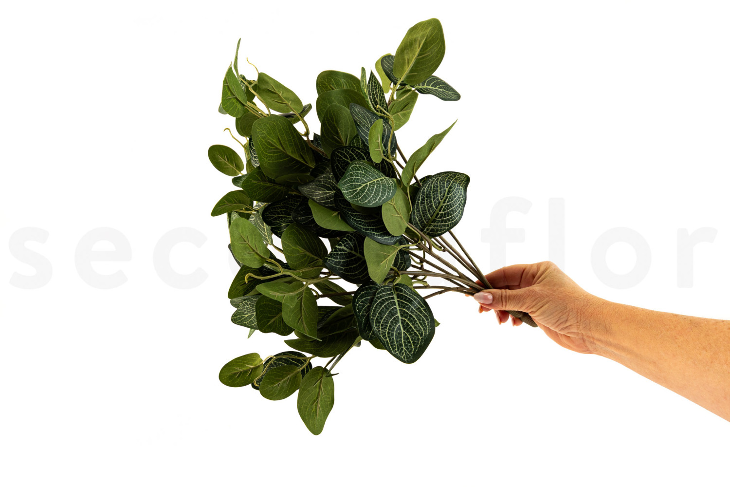 Die künstliche Fittonia, auf einem Stecker montiert, lässt sich problemlos in Vitrinen, dekorative Einfassungen oder grüne Wände integrieren, um strukturierte und langlebige Dekorationen zu schaffen. Feuerbeständig eignet sie sich ideal für öffentliche Bereiche. UV-beständig ist sie auch für helle Standorte oder in Fensternähe geeignet, ohne auszubleichen, und behält langfristig ihr natürliches Aussehen.
