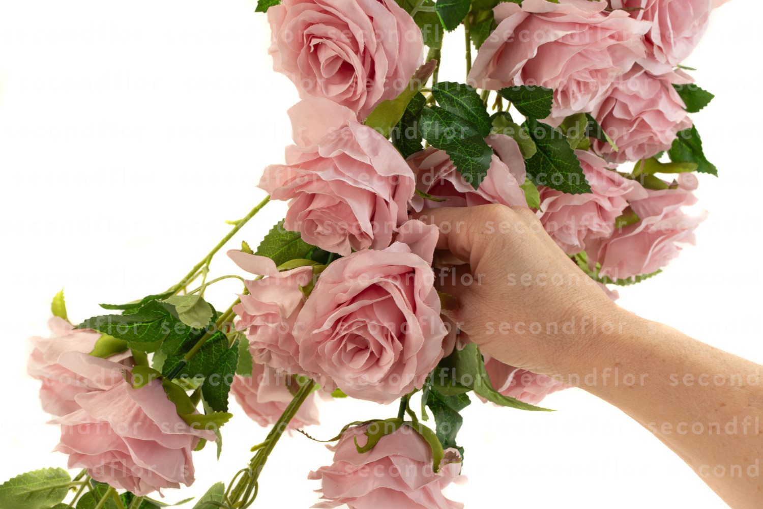 Dieser künstliche Rosenhänger eignet sich ideal, um einen Hochzeitsbogen zu schmücken, einer festlichen Tafel mehr Tiefe zu verleihen oder in einer Dekoration eine romantische und elegante Atmosphäre zu schaffen. Er besteht aus 4 Stielen und 34 Blüten und bietet bereits ein schönes Volumen, mit einer üppigen Form, die den Raum schnell ausfüllt.