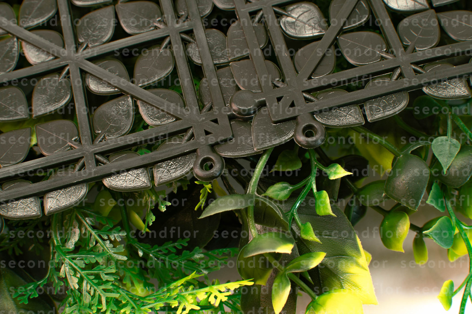 Dank ihrer UV-Beständigkeit kann diese hellgrüne künstliche Blattwerk-Platte sowohl im Innen- als auch im Außenbereich verwendet werden. Sie behält ihre Ausstrahlung in hellen Zonen und hält wiederholter Lichteinstrahlung stand, ohne an optischem Reiz zu verlieren. In Fensternähe, unter einem Glasdach, in einem sehr hellen Eingangsbereich, auf einer Terrasse, in einem Patio oder an einer dekorativen Fassade – sie bleibt immer überzeugend.