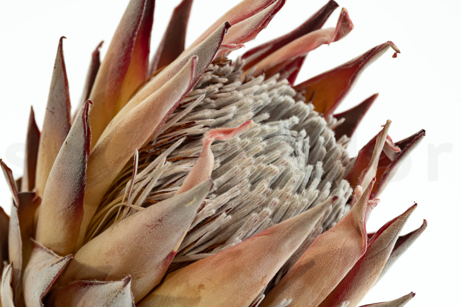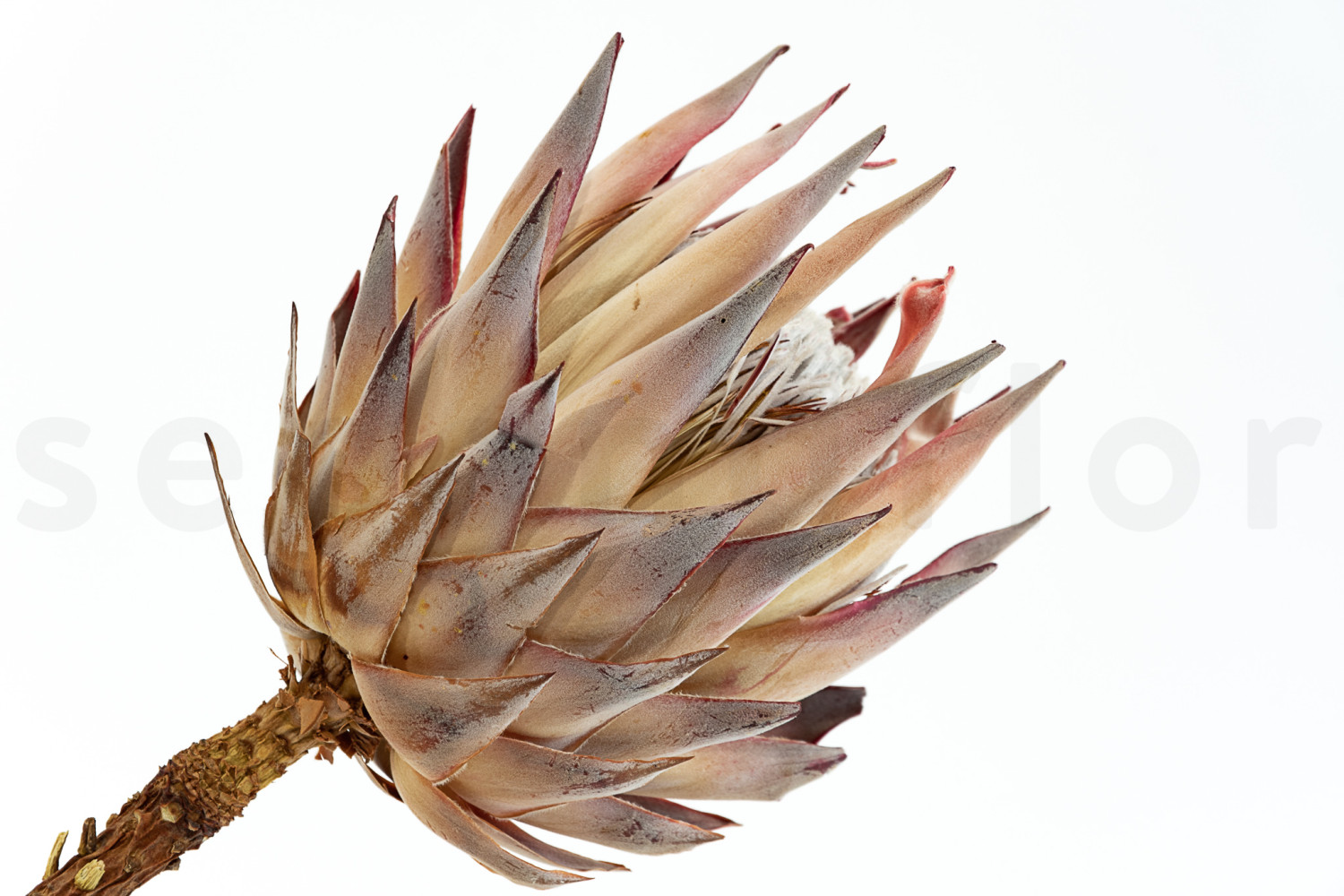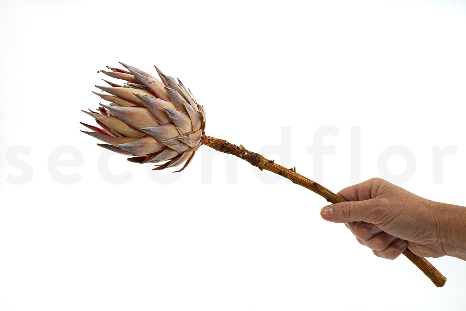Entdecken Sie unsere Protea Cynaroides stabilisiert - 1 Stiel - Cremefarben, erhältlich auf SecondFlor, Ihrem Großhändler für stabilisierte Blumen und Pflanzen.
