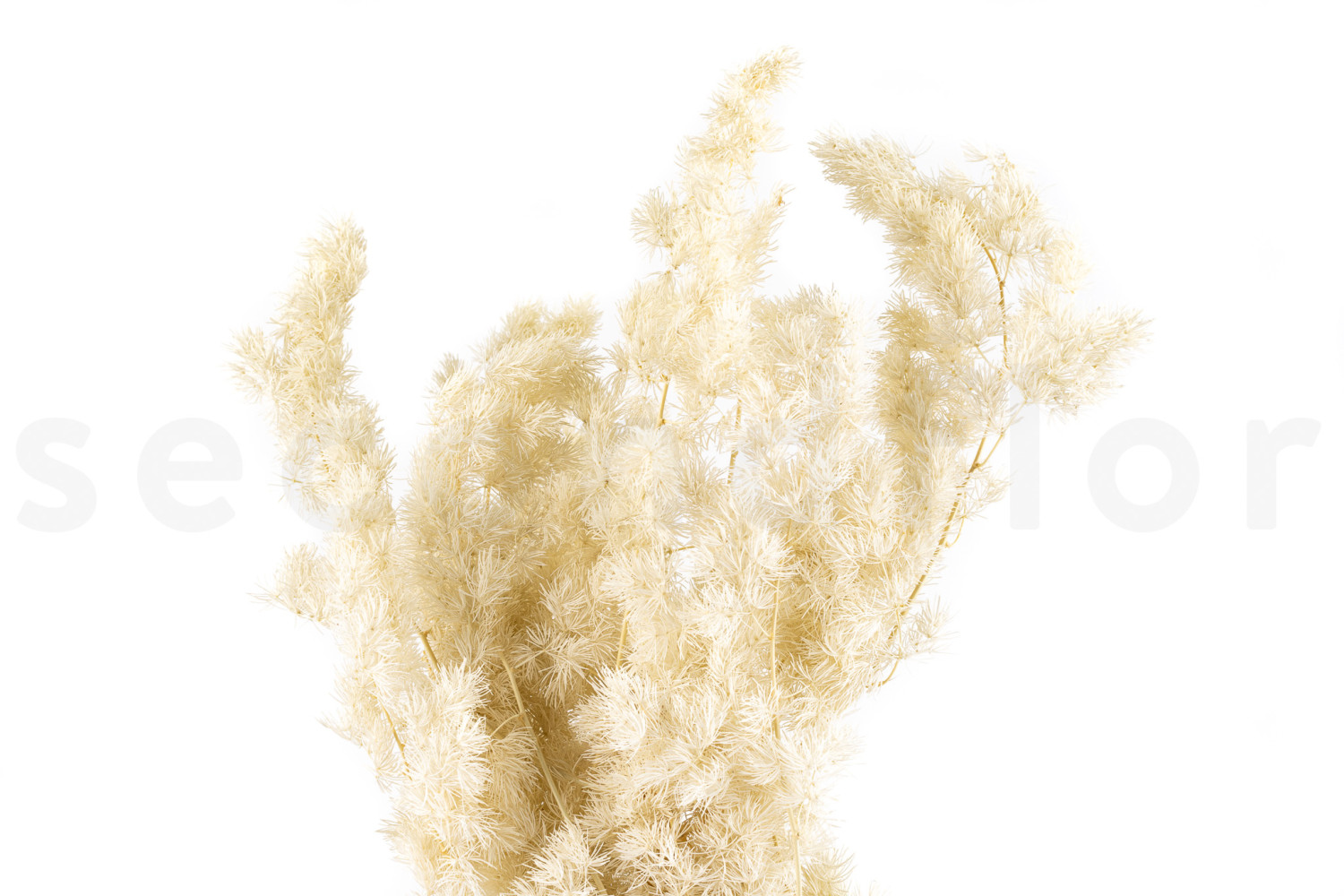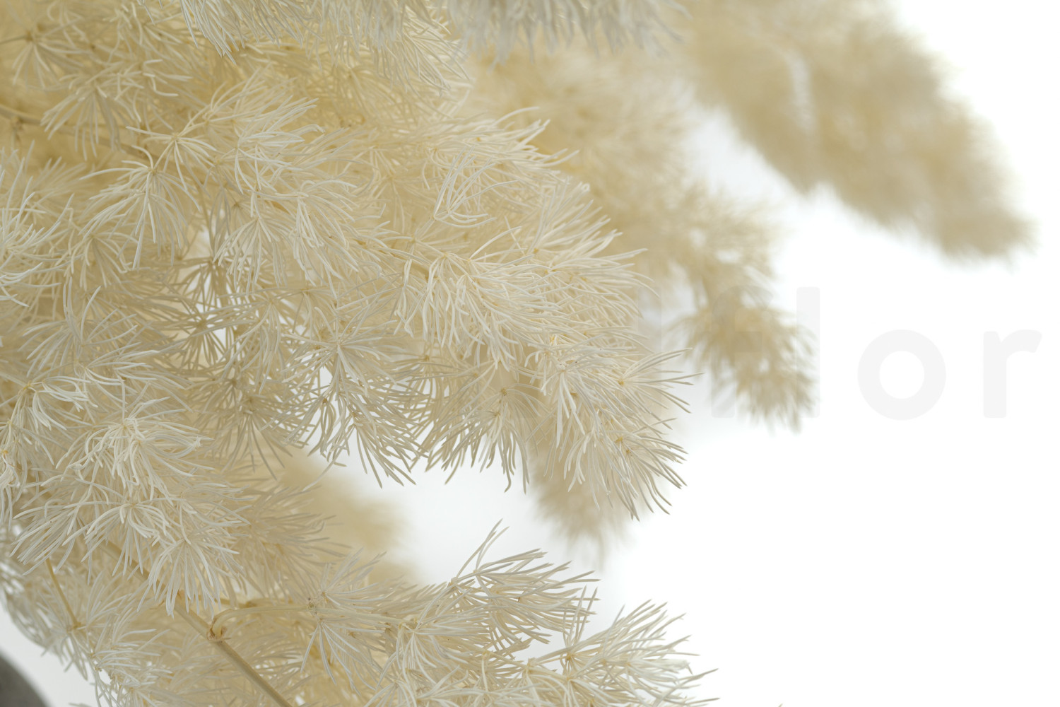 Das weiße Ming-Farn bringt harmonische Balance, hebt die Farben anderer Blumenelemente hervor und verleiht dem Ganzen eine weiche Note. Seine Vielseitigkeit und zeitlose Ästhetik machen es zur bevorzugten Wahl für große Kompositionen und Blumendekorationen bei Hochzeiten oder exklusiven Veranstaltungen.