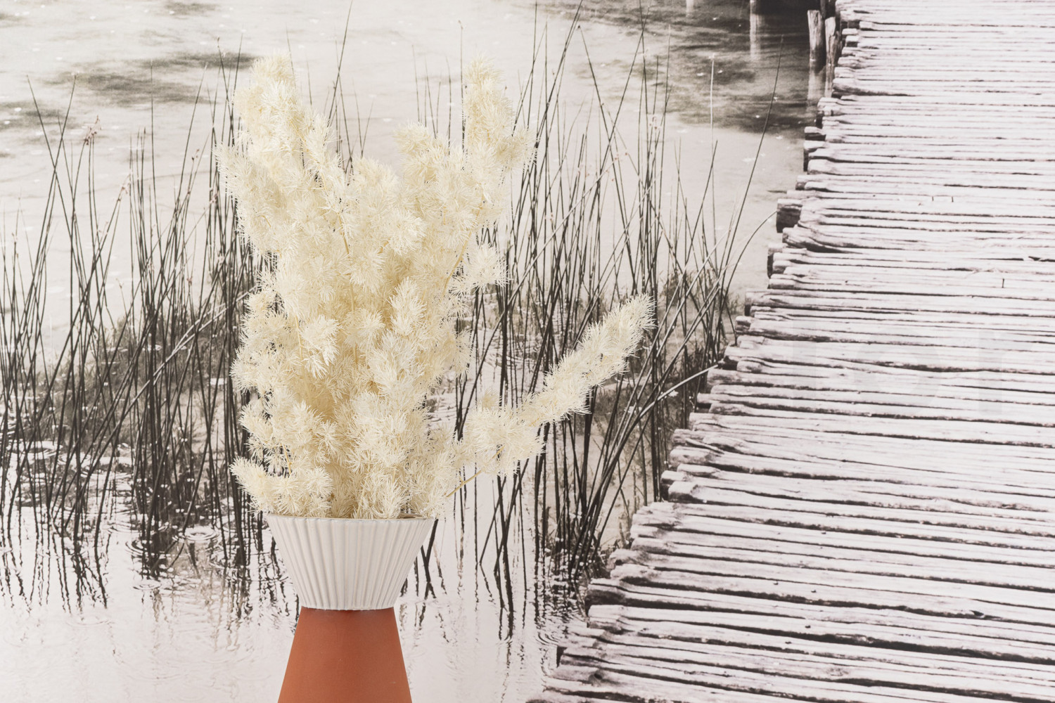 Neben Blumensträußen bietet das stabilisierte Ming-Farn zahlreiche kreative Möglichkeiten. Seine zarte und federleichte Struktur macht es zur idealen Wahl für elegante Tischdekorationen, Wandarrangements oder hängende Arrangements, die Räumen einen Hauch von Eleganz verleihen. Dank seiner leichten und verzweigten Struktur kann das Ming-Farn auch zur Dekoration von Events verwendet werden.