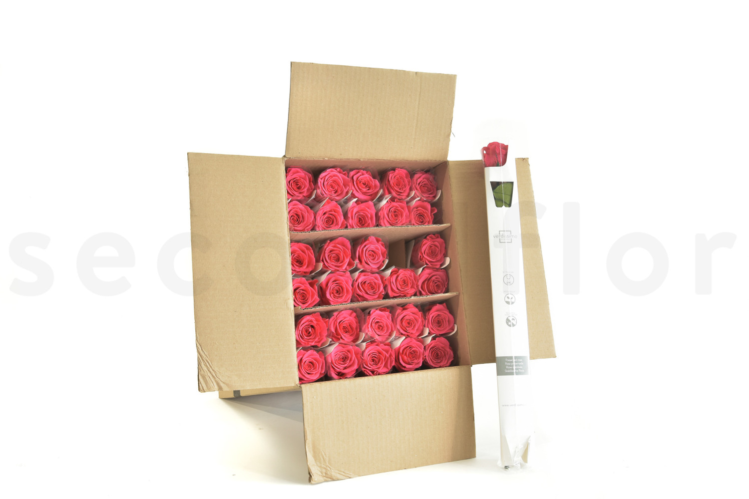 Entdecken Sie unsere Rose mit Stängel 50cm Stabilisiert - 30 Stück - Dunkelrosa, erhältlich auf SecondFlor, Ihrem Großhändler für stabilisierte Blumen und Pflanzen.