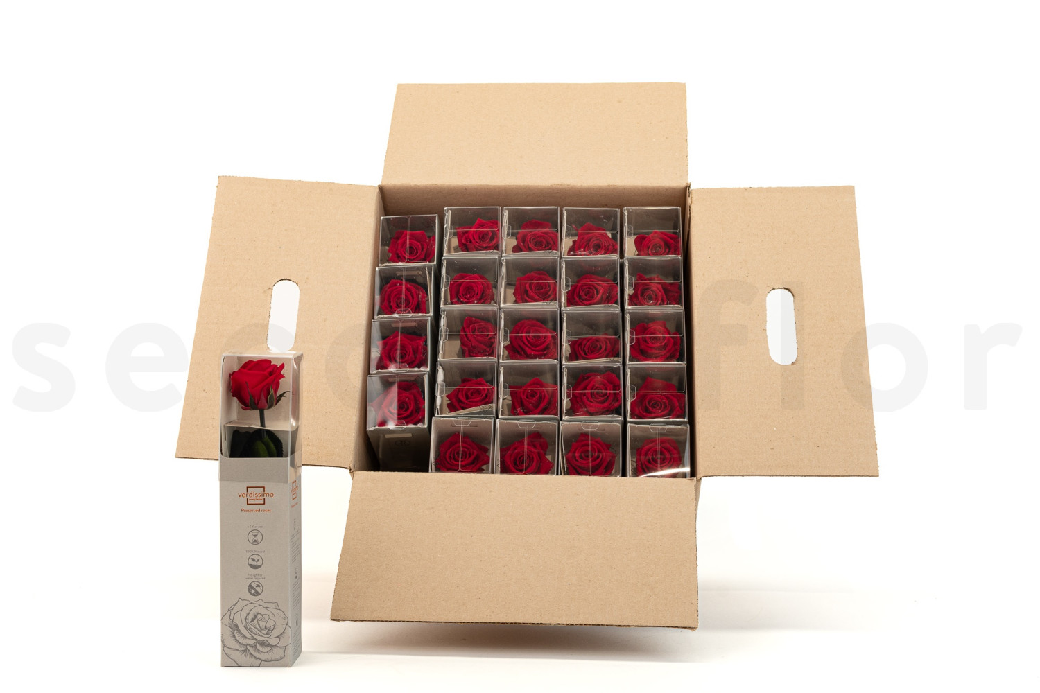 Entdecken Sie unsere Rosen mit Stängel stabilisiert 30 cm - Gift Box 25 Stück - Rot, erhältlich auf SecondFlor, Ihrem Großhändler für stabilisierte Blumen und Pflanzen.