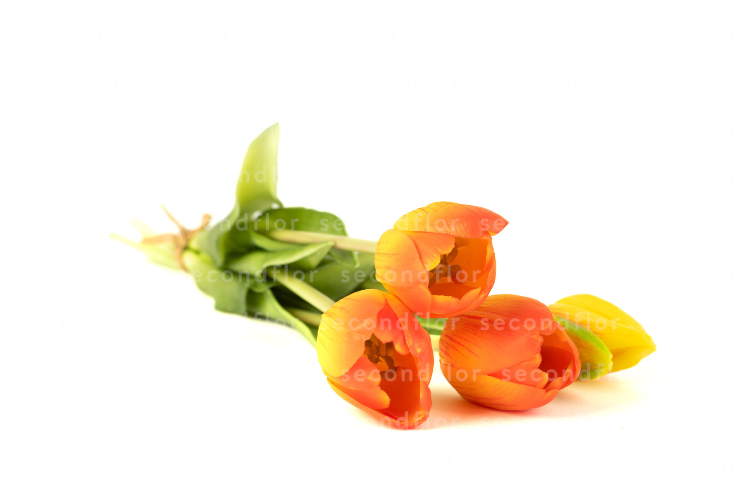 This artificial tulip bouquet is ideal for quickly creating a small floral display in a vase, on a table, a counter or in a window display. It is available in several colours to suit different styles and atmospheres. The bouquet is made up of 5 flowers, including 3 open tulips and 2 buds, along with 8 long leaves, for a balanced and already well-structured look.