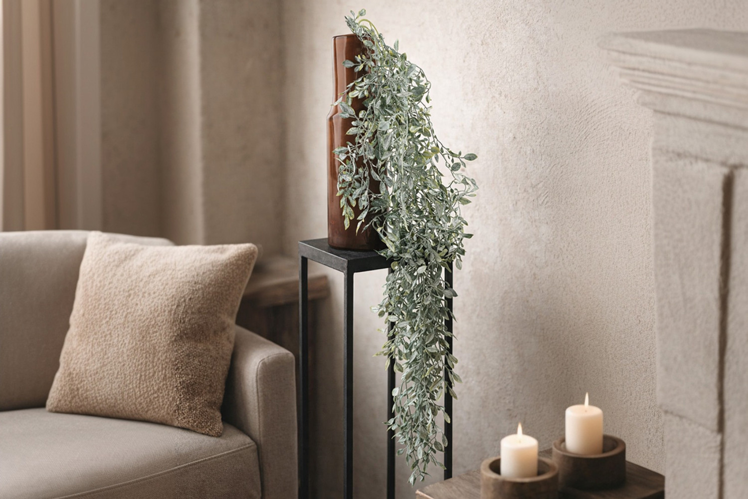 Green walls are the ideal setting for artificial trailing foliage. Cascading leaves instantly add movement and depth to vertical compositions. They create a natural waterfall effect that brings the whole design to life, while remaining easy to handle. This saves valuable time during installation and ensures a clean, professional finish.