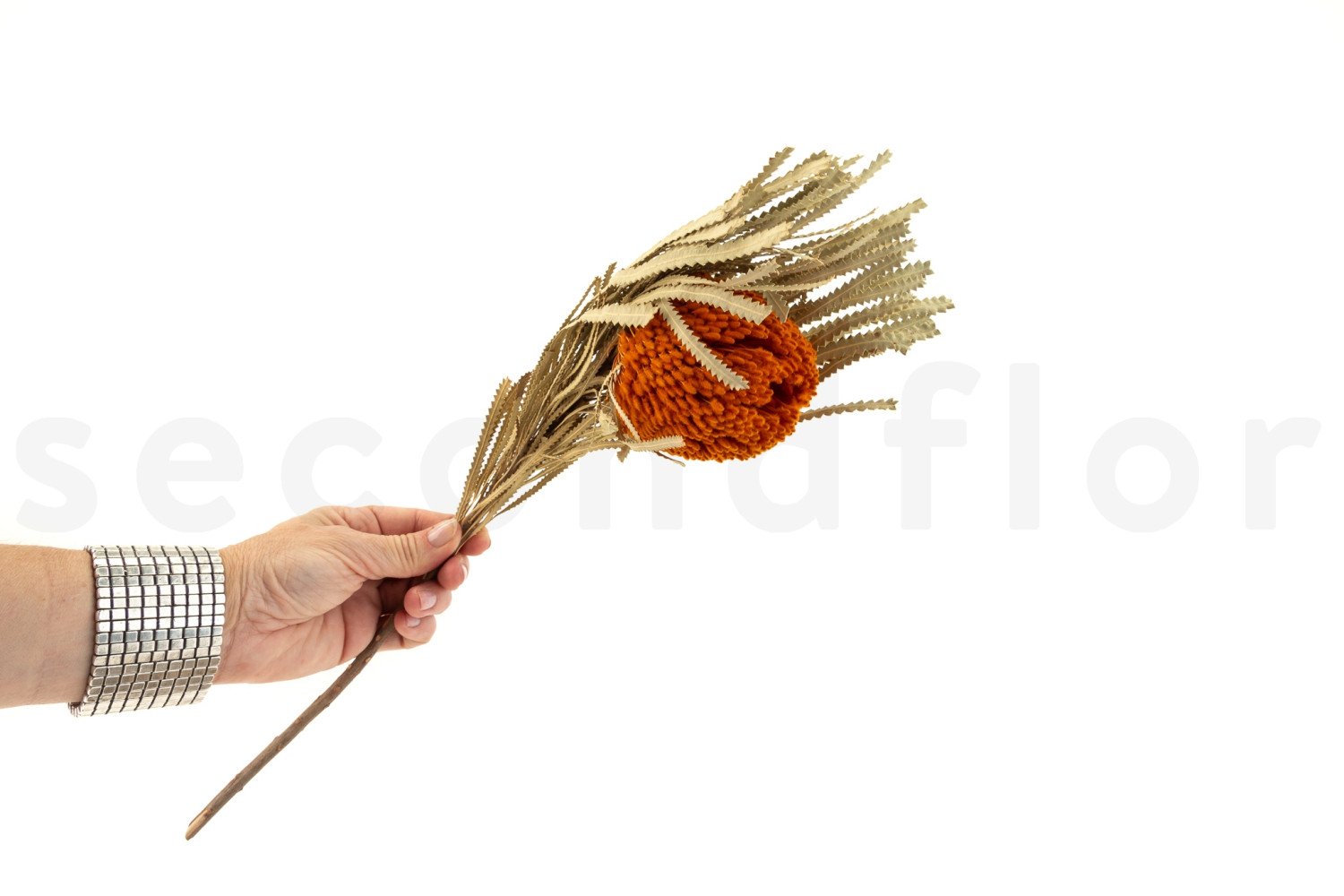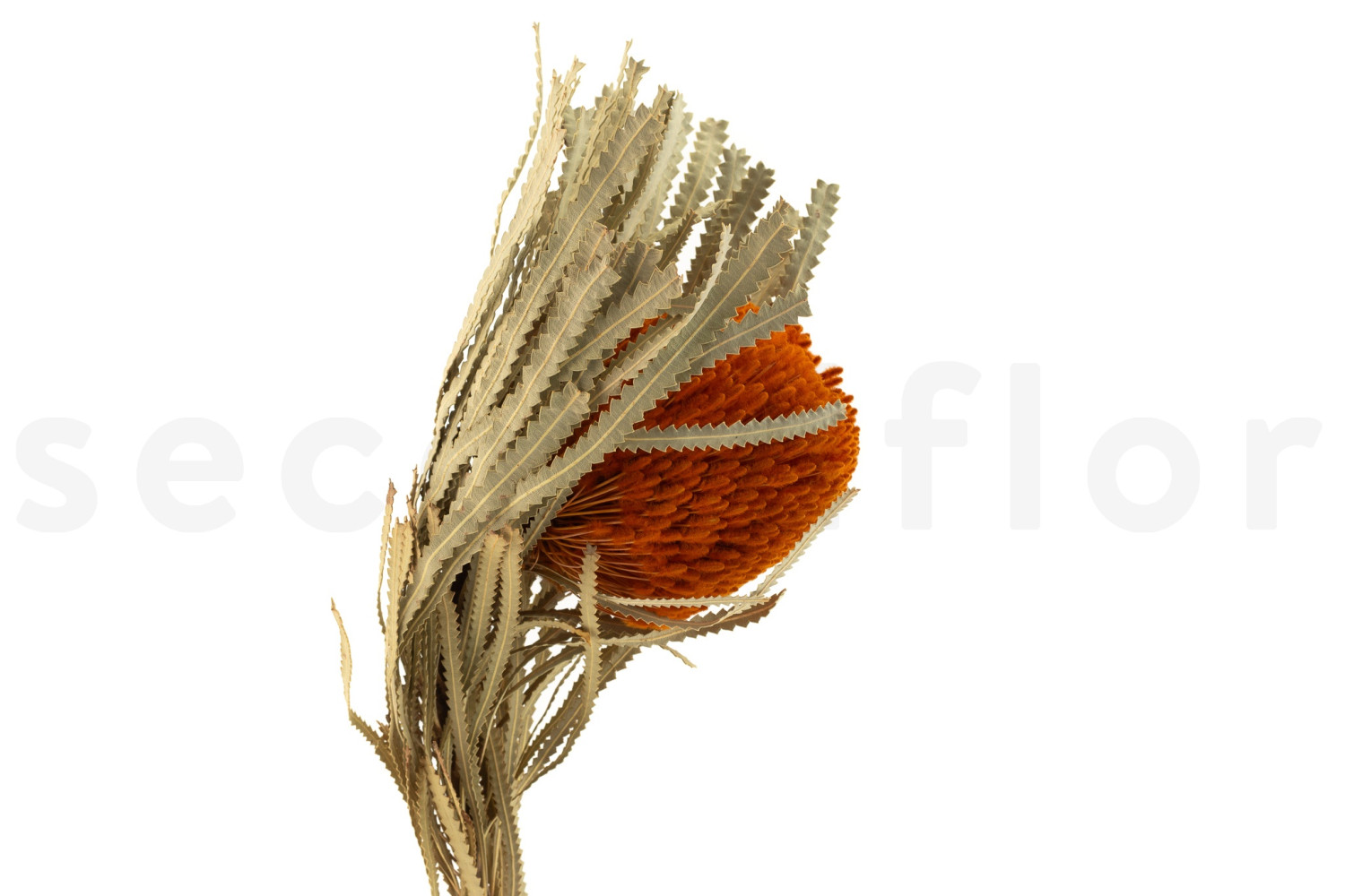 Discover our Dried Banksia Hookeriana - 1 Stem - Orange, available on secondflor, your wholesaler of preserved flowers and plants.