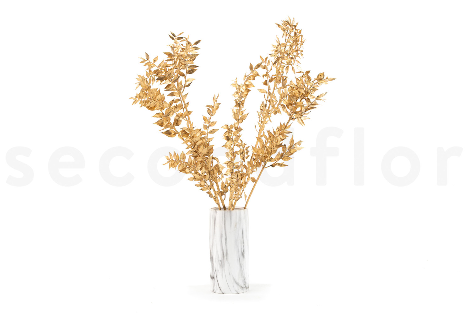 Golden ruscus is a valuable addition to elevate your floral arrangements. Its large, elegant branches and delicate small leaves provide both volume and structure, while highlighting other plant elements. Its metallic sheen creates a refined contrast with flowers in rich tones, like the red of roses or the green of eucalyptus.