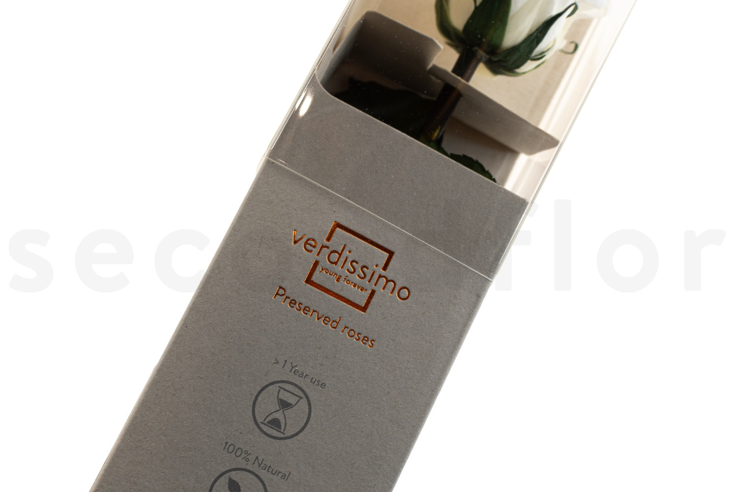 Discover our Roses on stem stabilized 30cm - Gift Box 25 Units - White, available on secondflor, your wholesaler of preserved flowers and plants.