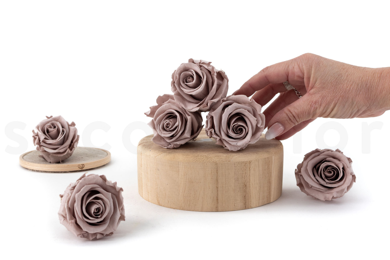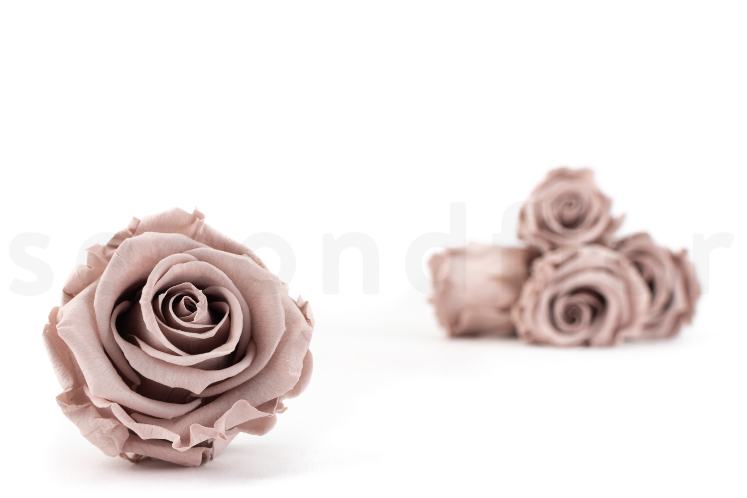 In wedding bouquets, the Rose Hazelnut subtly replaces nude or sand tones, bringing a more organic dimension. In interior decoration, it softens modern spaces, adds warmth to wooden settings, and highlights natural materials like stone, linen or light leather.