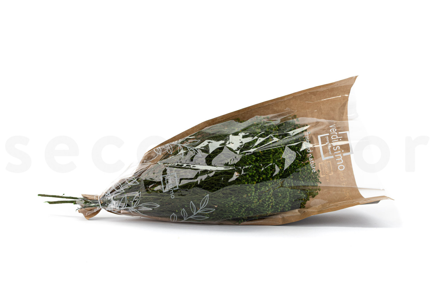 The preserved green broom is a delicate, dense foliage that brings volume, texture, and freshness to floral arrangements. Sold in bunches of 30 to 60 cm, this natural filler with tiny clustered flowers is ideal for bouquets, green walls, or interior installations.