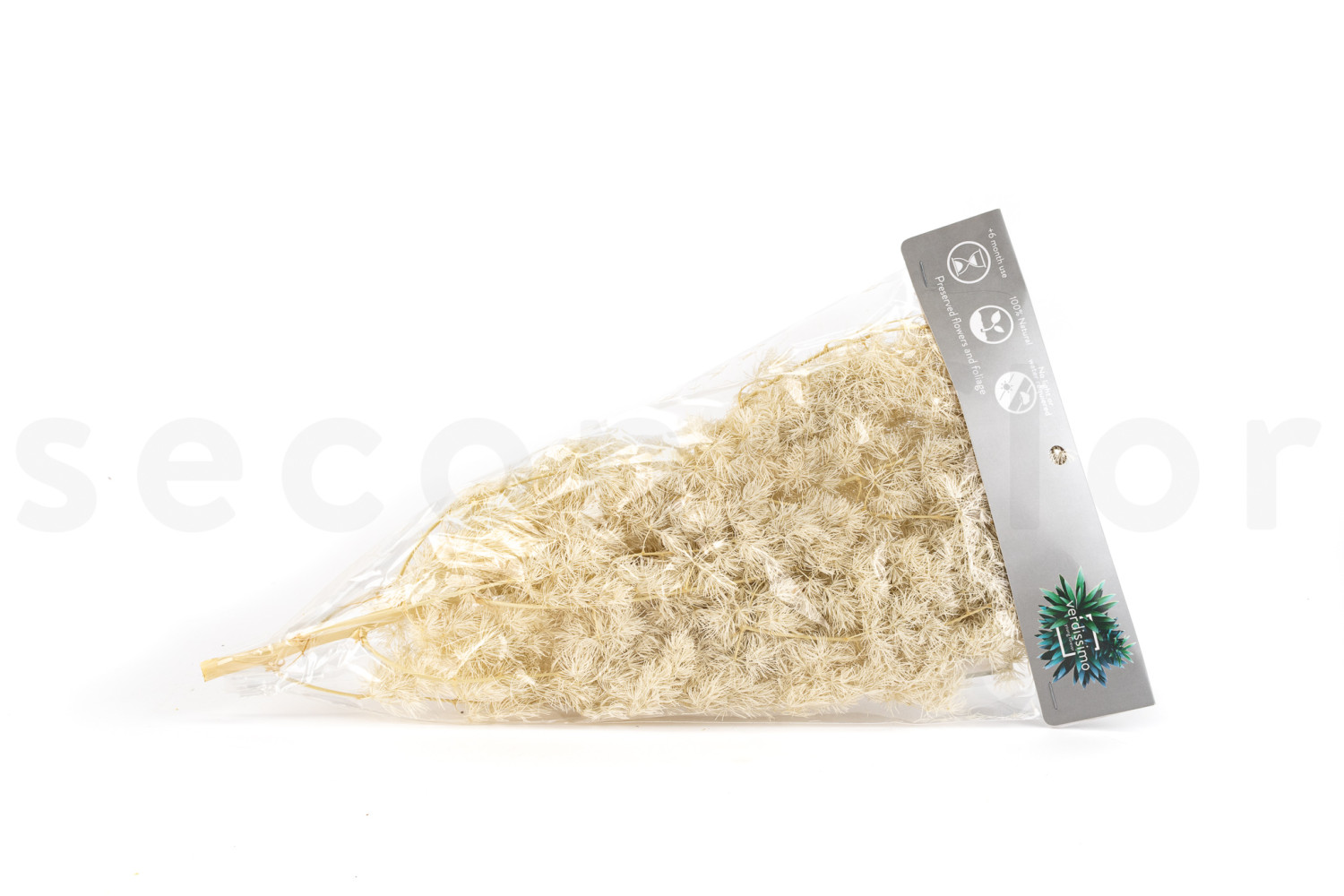 Además de los ramos, el Ming Fern estabilizado ofrece múltiples posibilidades creativas. Su textura delicada y plumosa lo convierte en una opción ideal para centros de mesa elegantes, composiciones murales o arreglos colgantes que añaden un toque sofisticado a los espacios. Gracias a su estructura ligera y ramificada, el Ming Fern también se puede utilizar para decorar eventos.