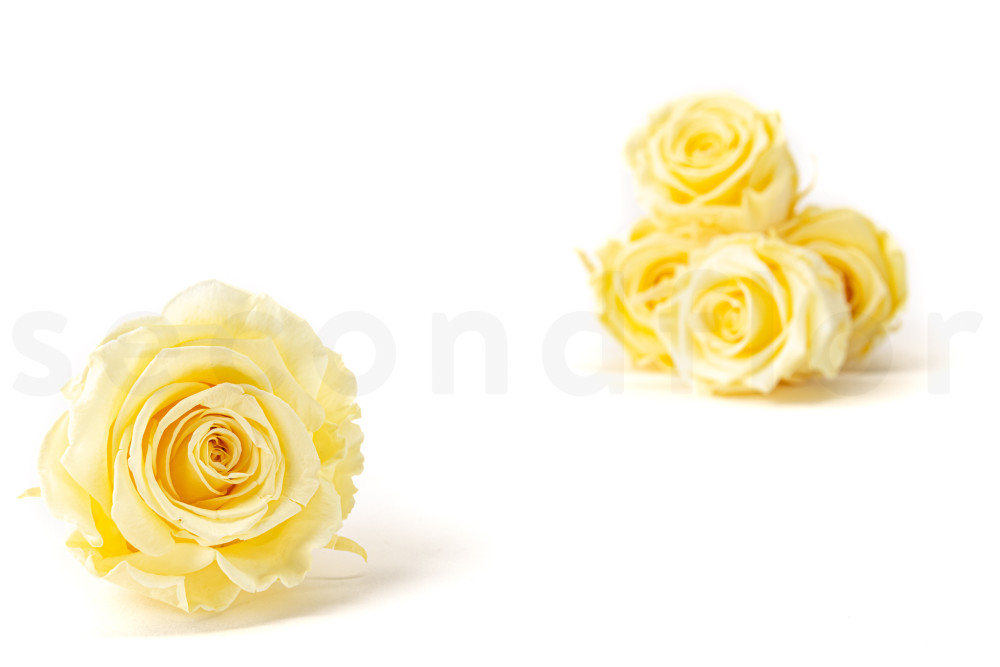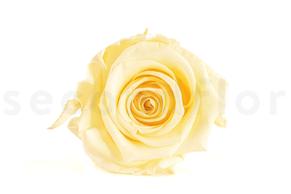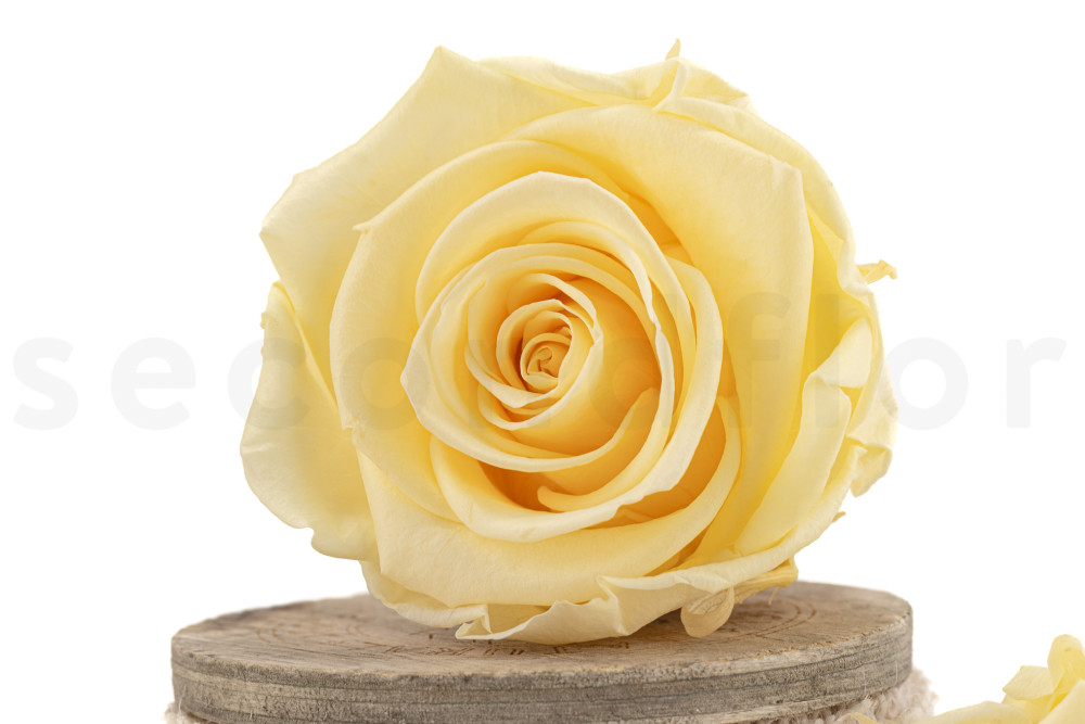 Elaborada en un delicado color Buttermilk, esta rosa amarillo pastel evoca la suavidad y delicadeza de los primeros rayos de sol de la mañana. Cada pétalo, cada curva, se captura en un estado de eterna perfección, ofreciendo una belleza atemporal a su decoración floral.