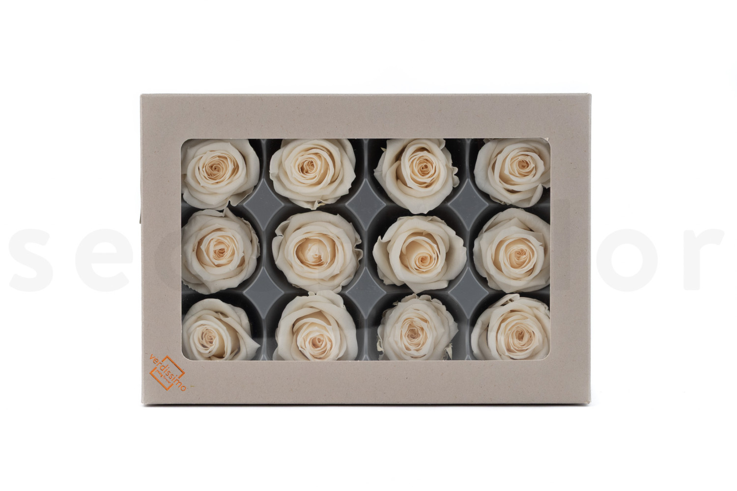 Descripción producto Rosa preservada Verdissimo M - Caja de 12 - Champagne