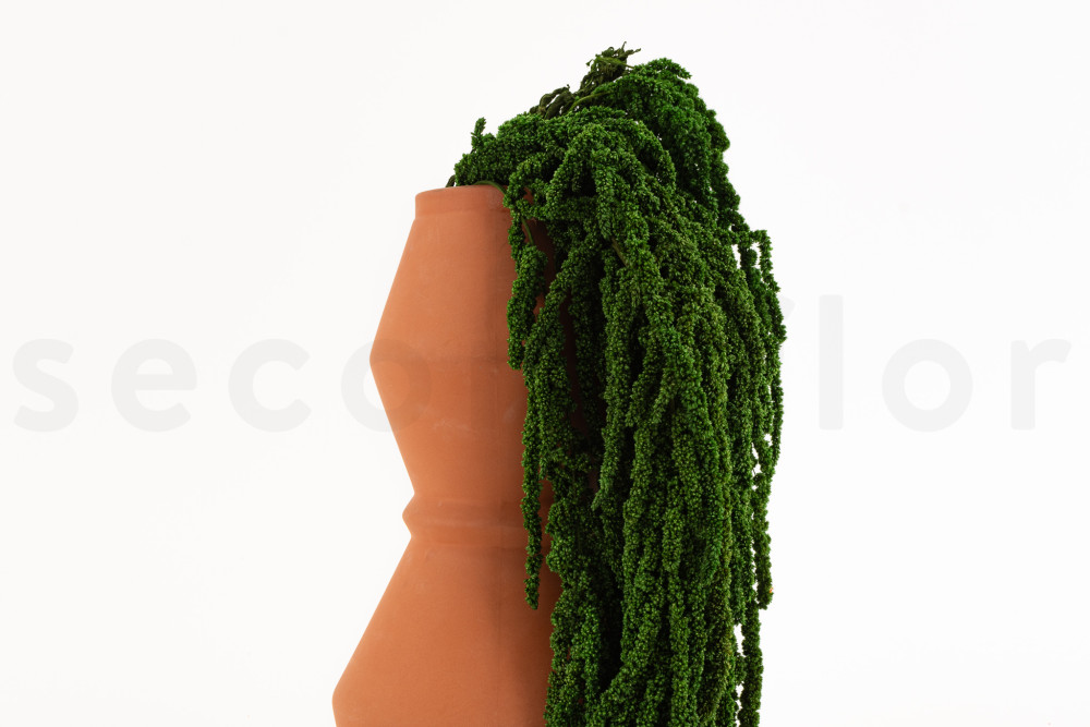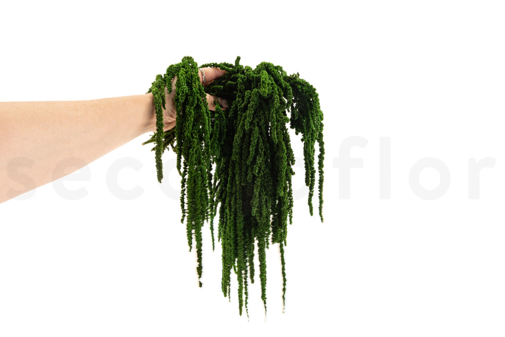 - Fine Grass Séchée : La texture légère et vaporeuse de la fine grass séchée en couleur Eden Green complète parfaitement les inflorescences denses de l’amarante.