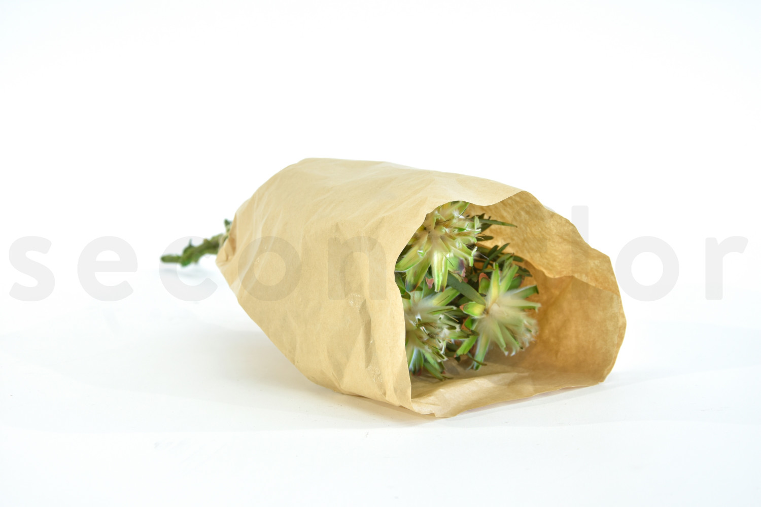 Déballage : Enlever l'élastique à la base du bouquet pour retirer le film d'emballage.