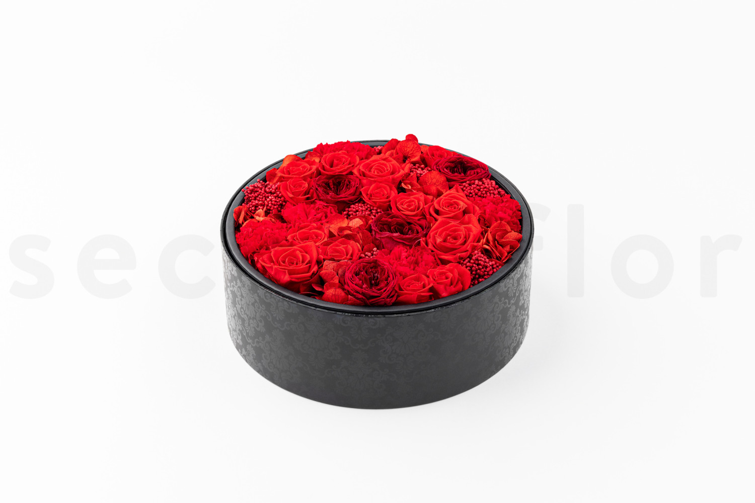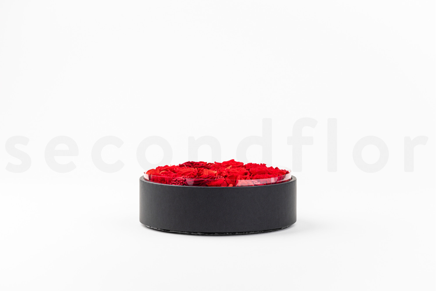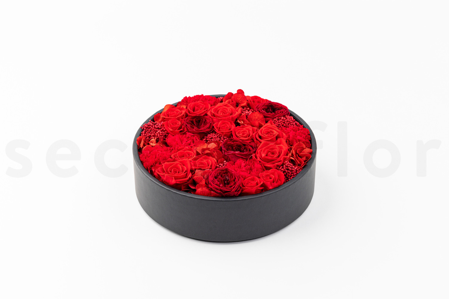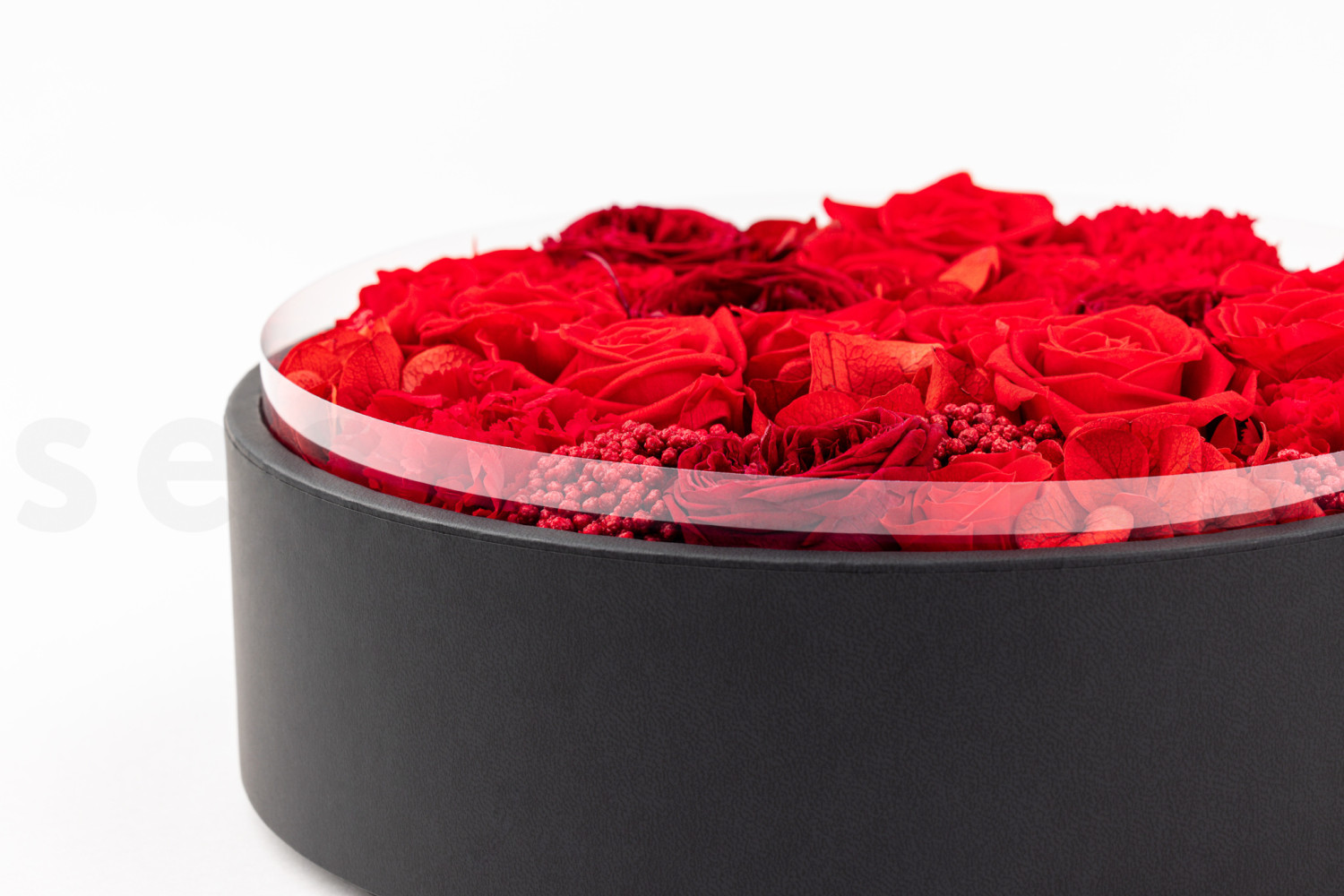 Fleurs rouges stabilisées dans une boîte ronde - Large