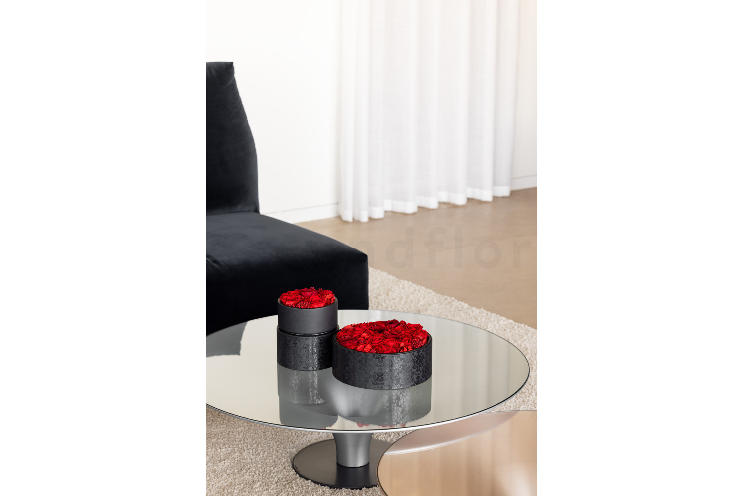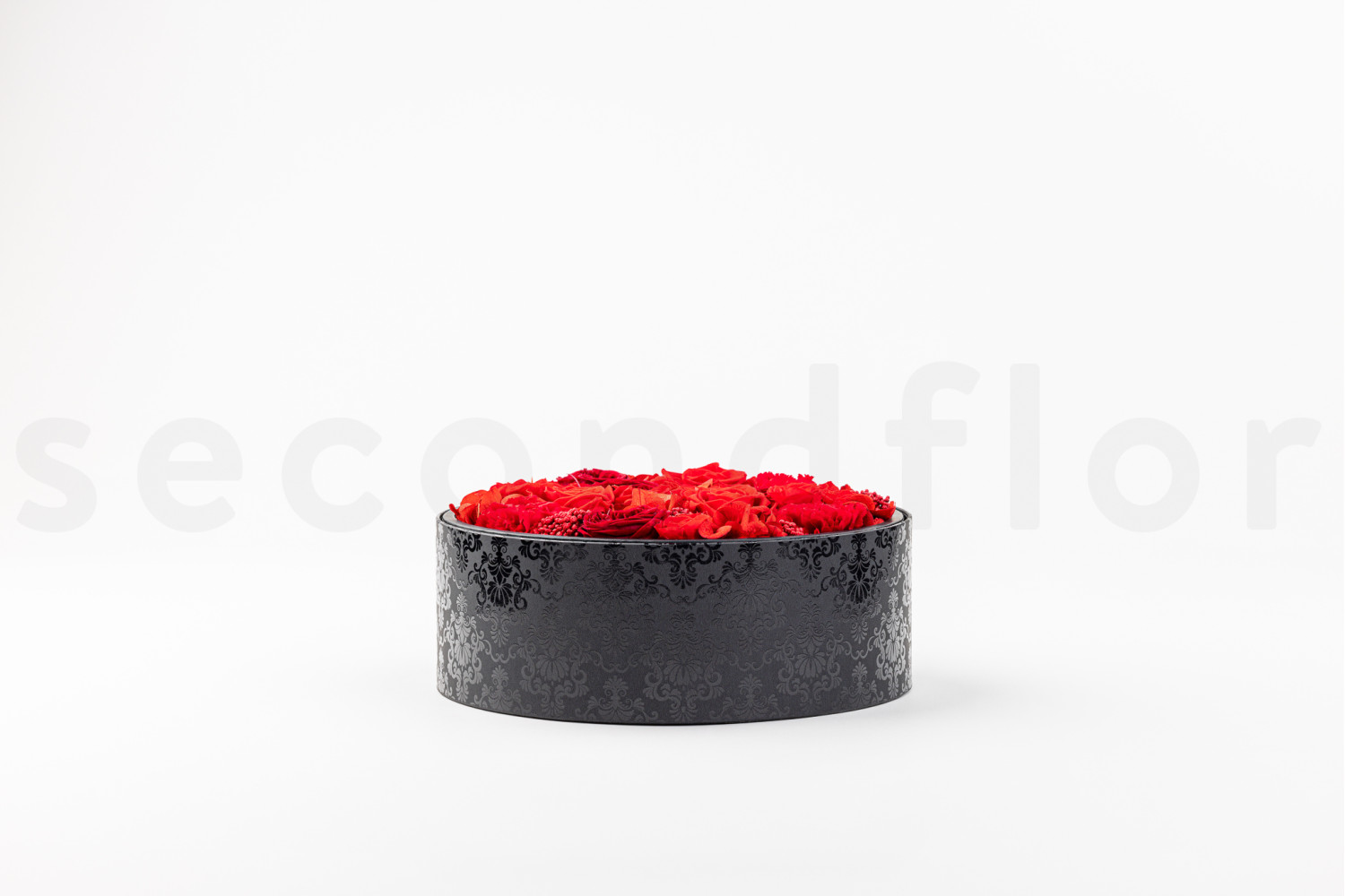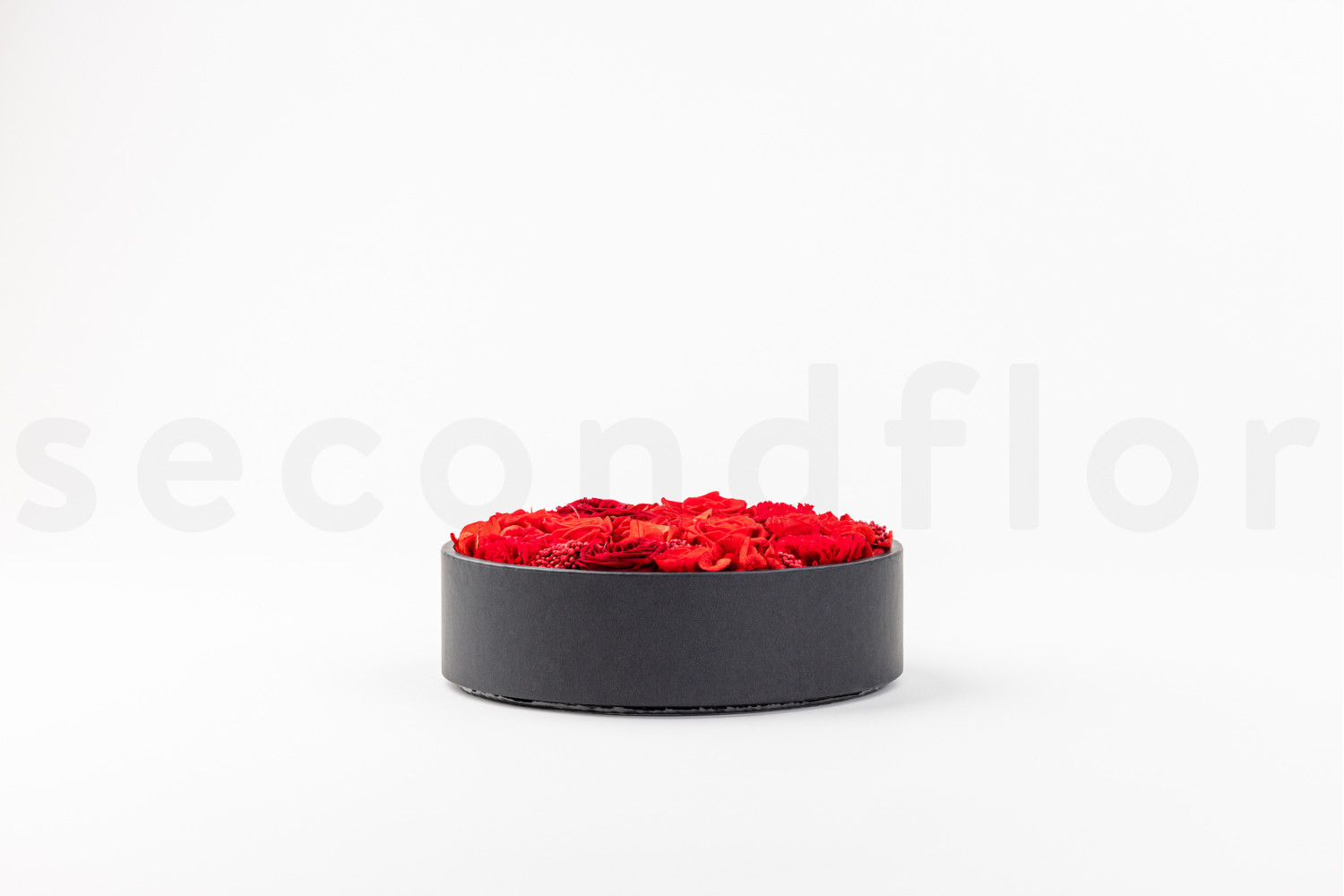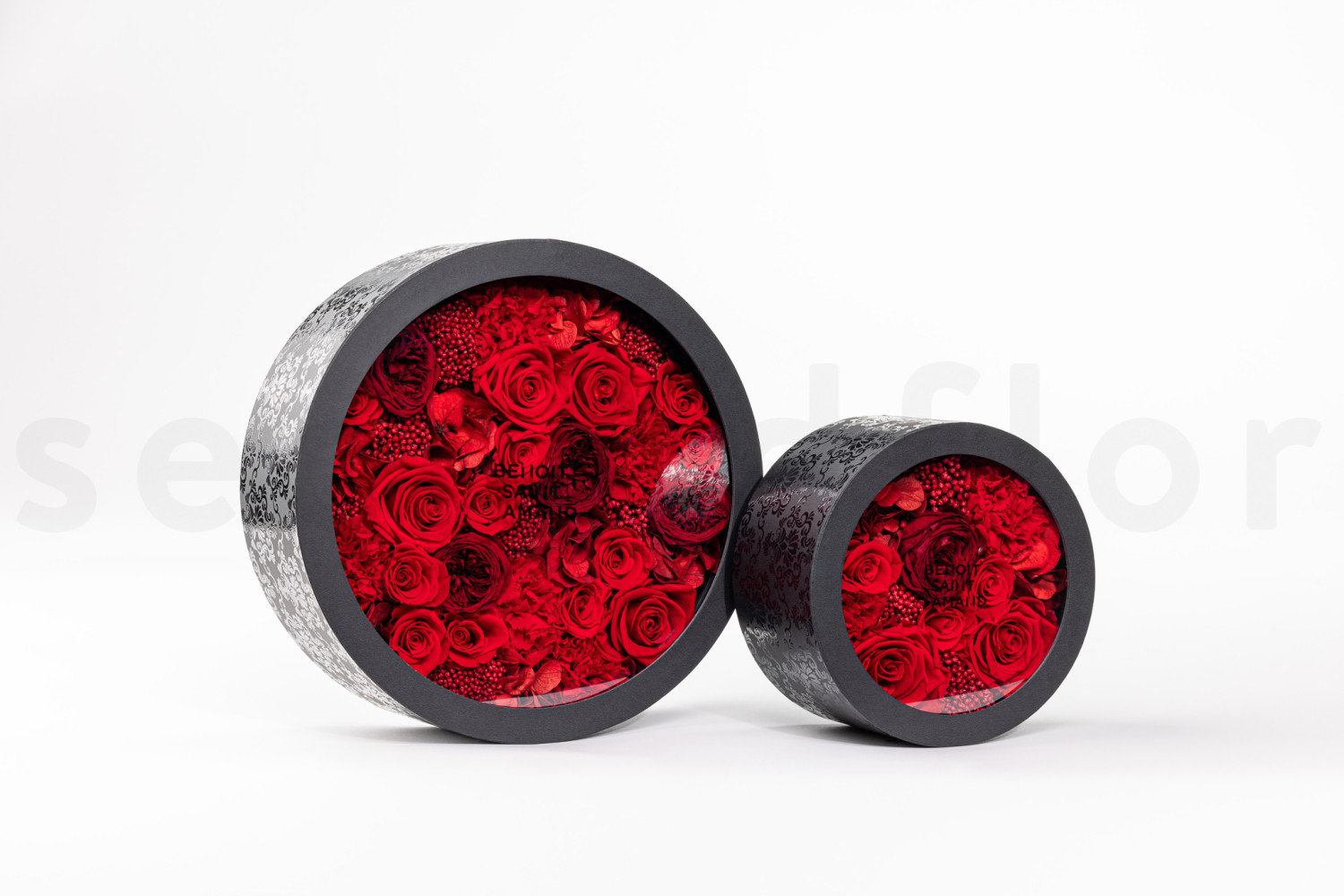 Fleurs rouges stabilisées dans une boîte ronde - Large