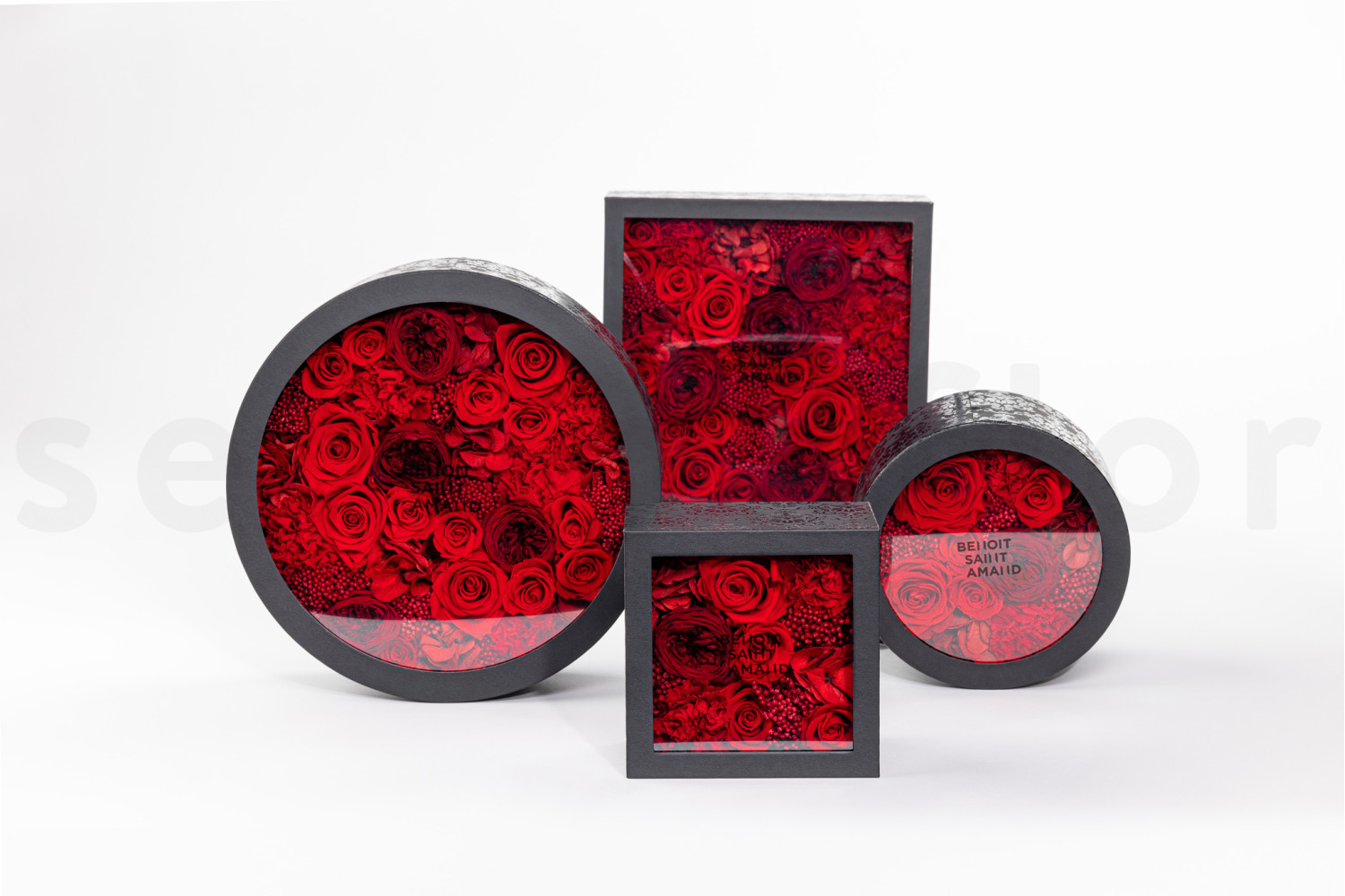 Chaque boîte est conçue avec soin, en utilisant uniquement des fleurs stabilisées de qualité et des matériaux sélectionnés pour leur tenue et leur élégance. Nous misons sur l’équilibre des volumes, la richesse des textures et la profondeur des couleurs pour vous garantir un rendu haut de gamme, digne des plus belles compositions florales.