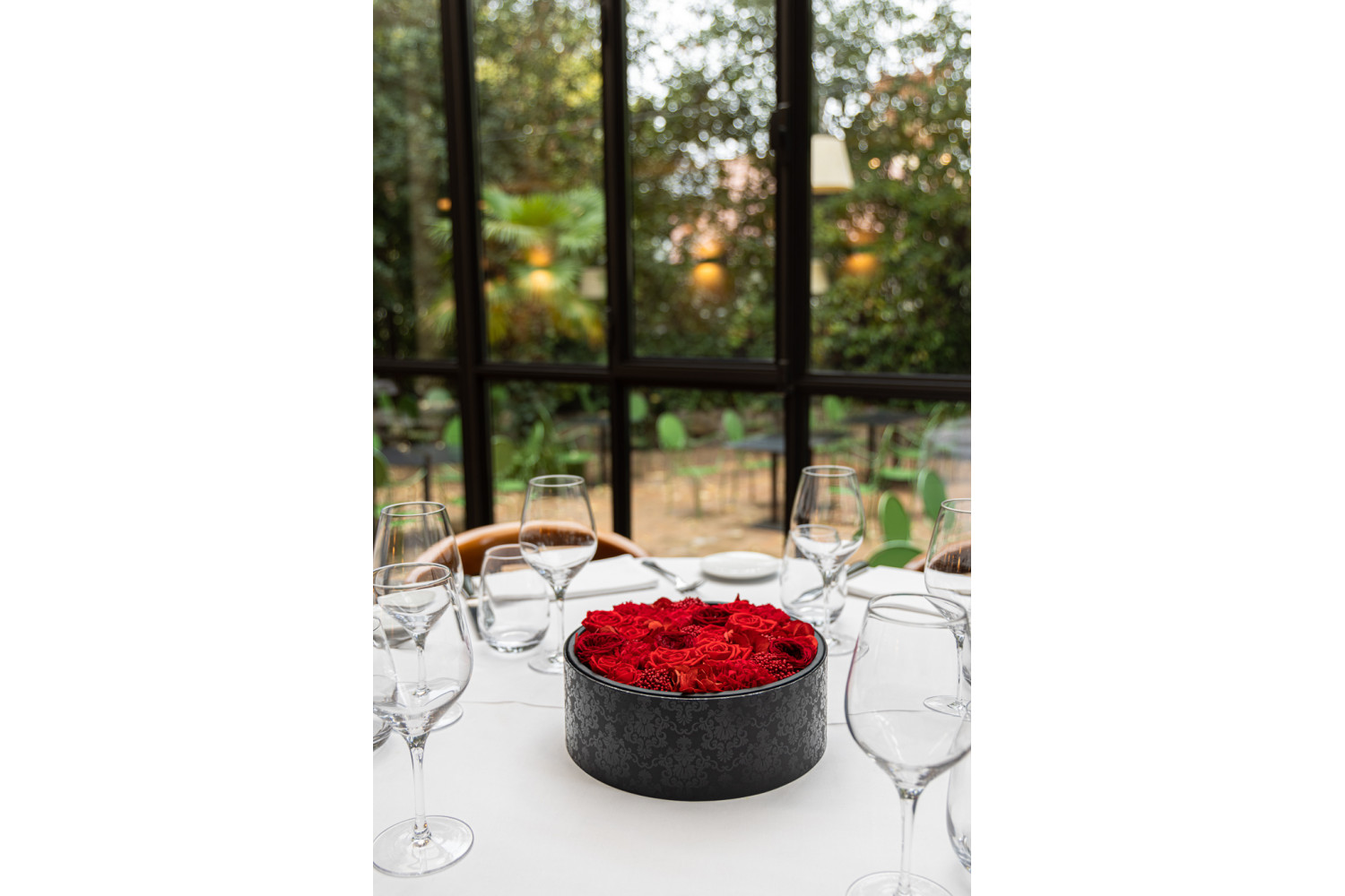 Prête à l’emploi, cette boîte florale peut être utilisée comme centre de table, mise en vitrine ou cadeau haut de gamme pour des événements professionnels ou privés.