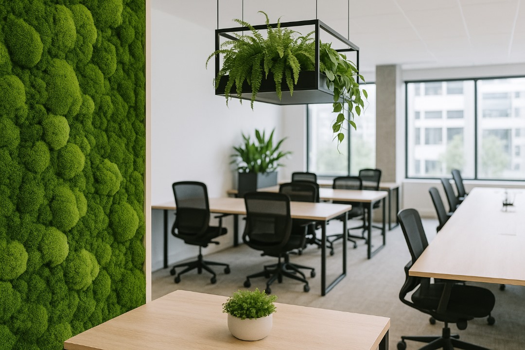 Mousse douce sous les yeux, feuillage léger dans le champ de vision, senteurs végétales discrètes… tous ces éléments participent à créer un environnement plus humain, plus naturel, plus productif aussi.