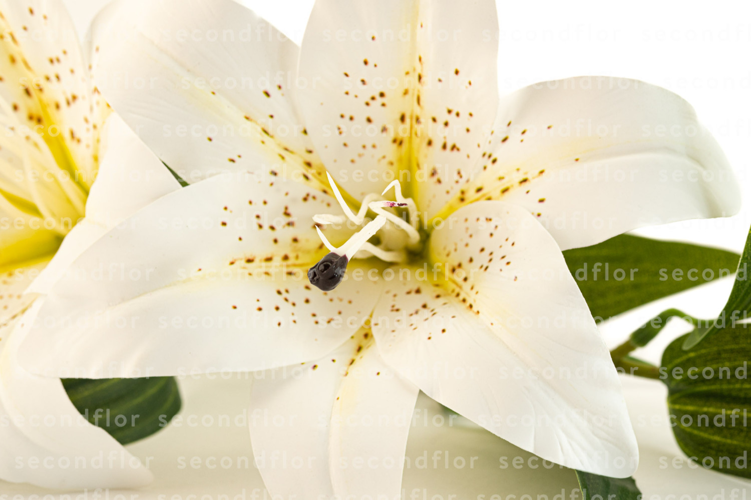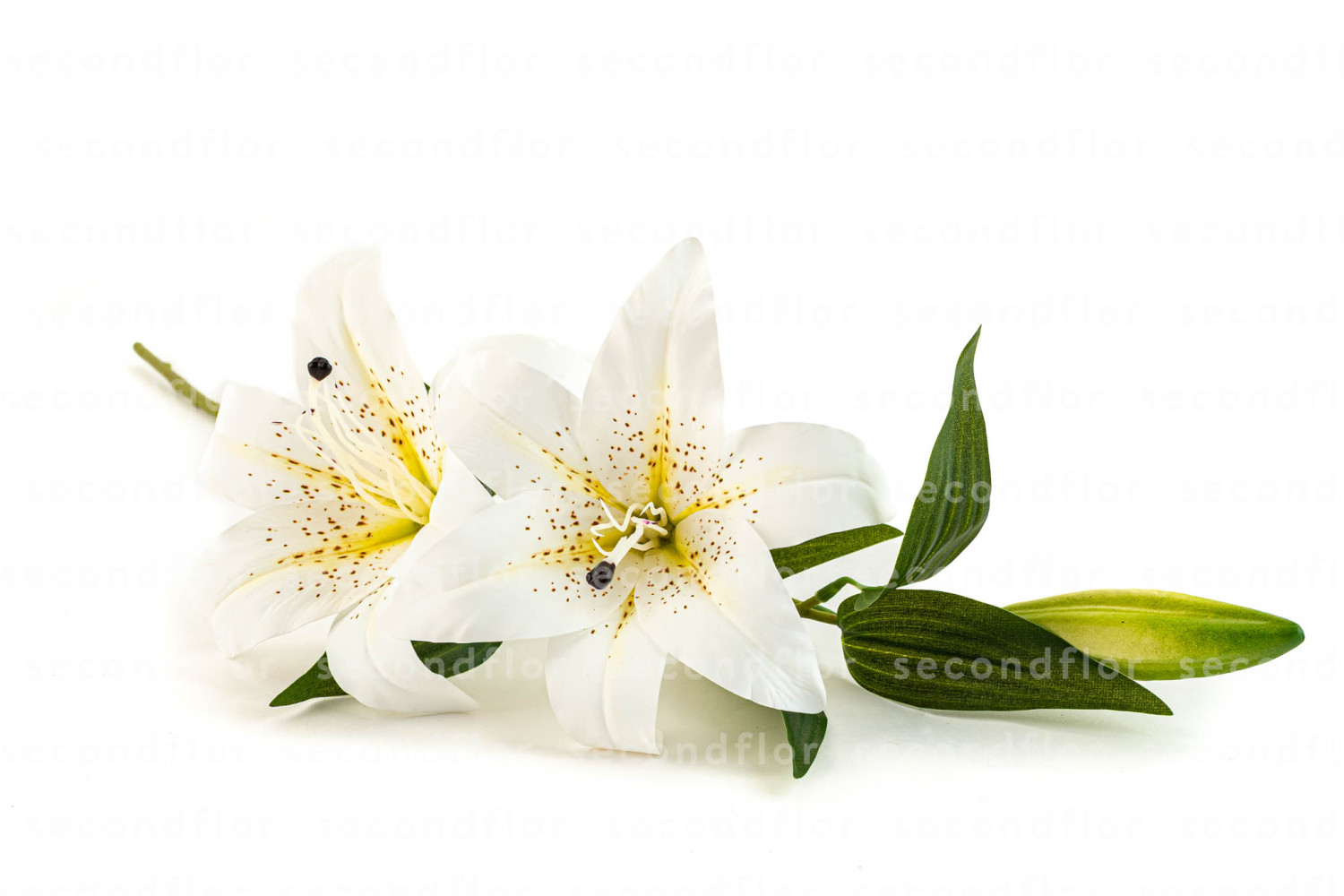 Le lys géant artificiel blanc se compose de 2 fleurs ouvertes et de 1 bouton sur la même tige, pour un rendu équilibré et déjà bien construit. Son aspect velouté type “real touch” renforce l’effet réaliste au regard comme au toucher. Ce produit peut être utilisé pour compléter une mise en scène florale, habiller une vitrine ou apporter du volume à un décor de réception.