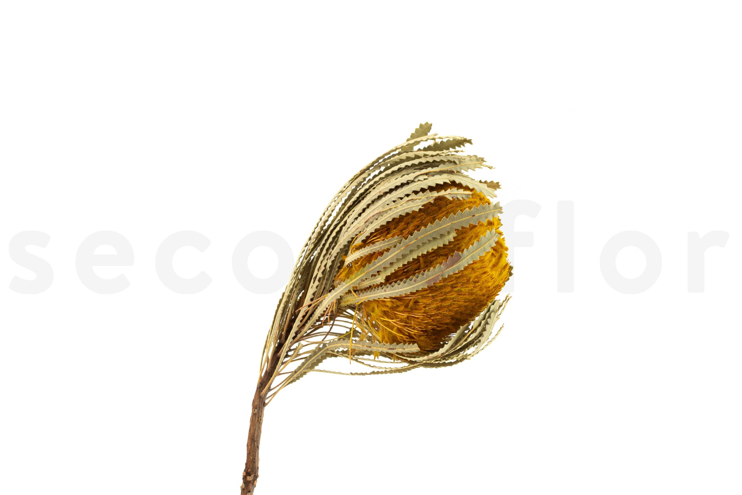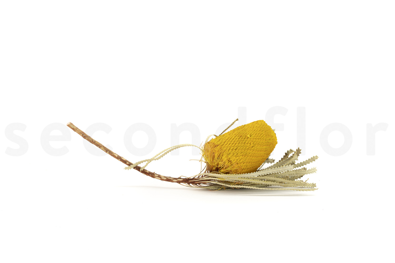 Découvrez nos Banksia Hookeriana séché - 1 Tige - Jaune, disponibles sur SecondFlor, votre grossiste en fleurs et plantes stabilisées.