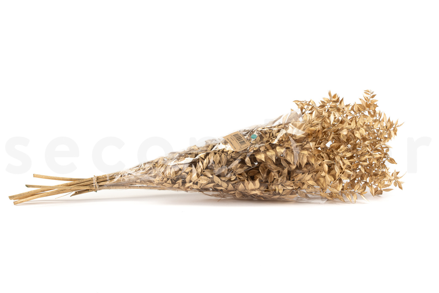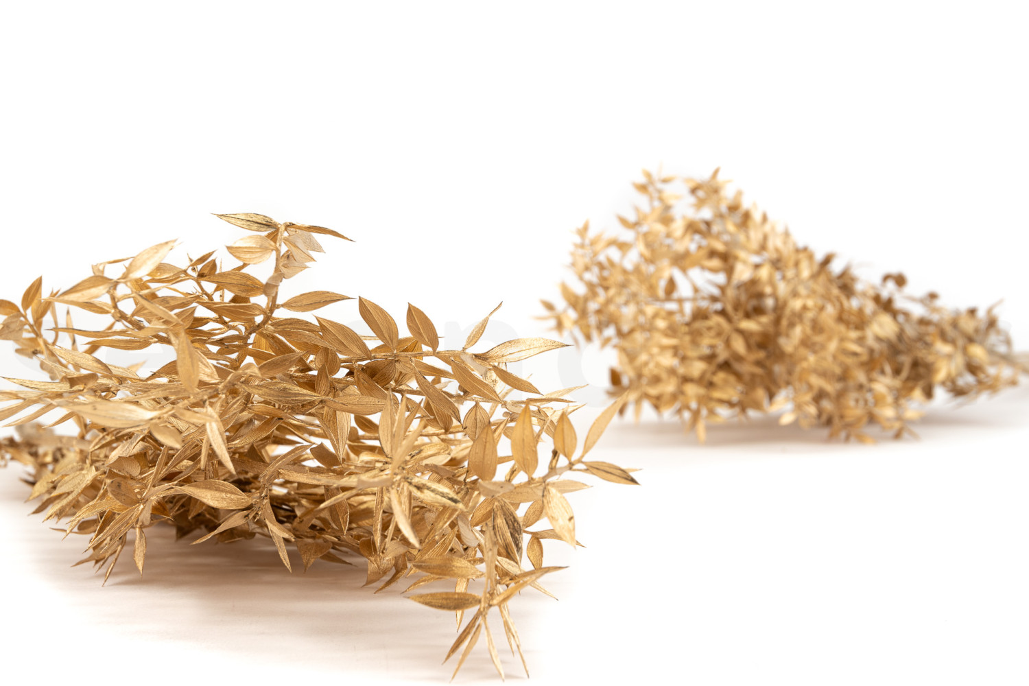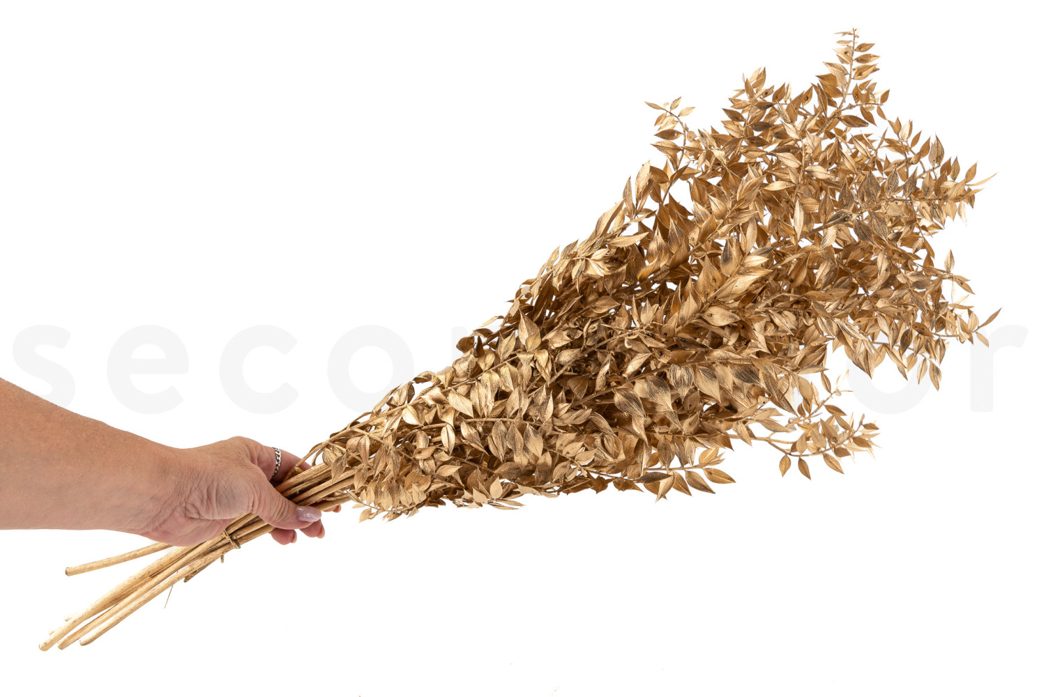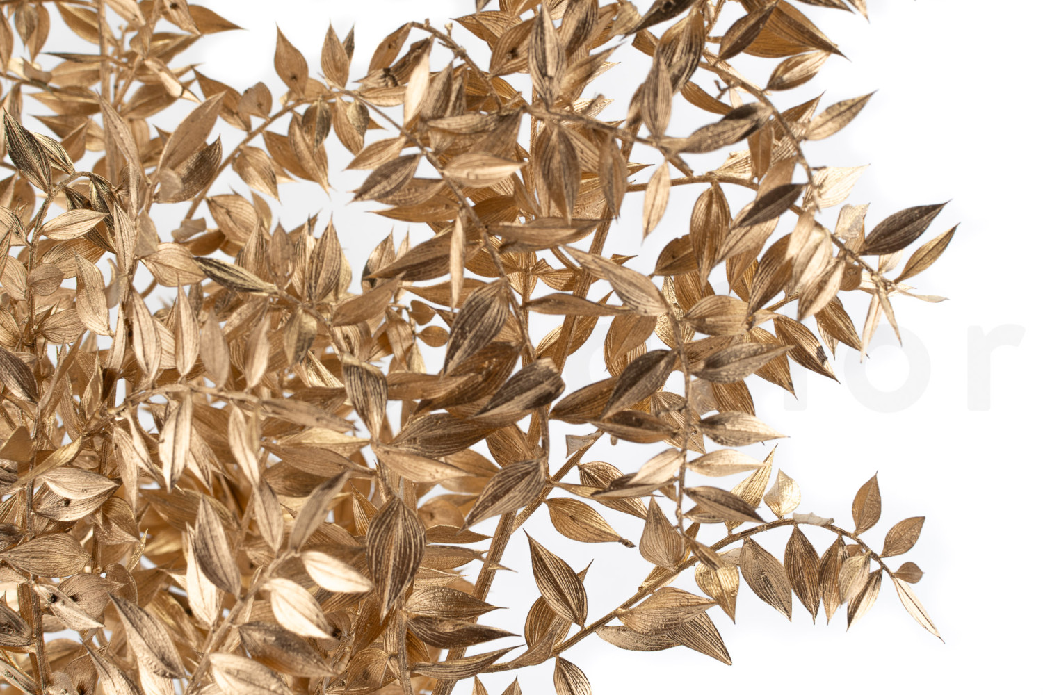 Il s'accorde également parfaitement avec des couleurs plus neutres comme l'ivoire, le blanc ou le beige pour une touche de sophistication. Idéal pour les compositions festives, le ruscus doré s'intègre harmonieusement aux bouquets de mariage, centres de table ou guirlandes.