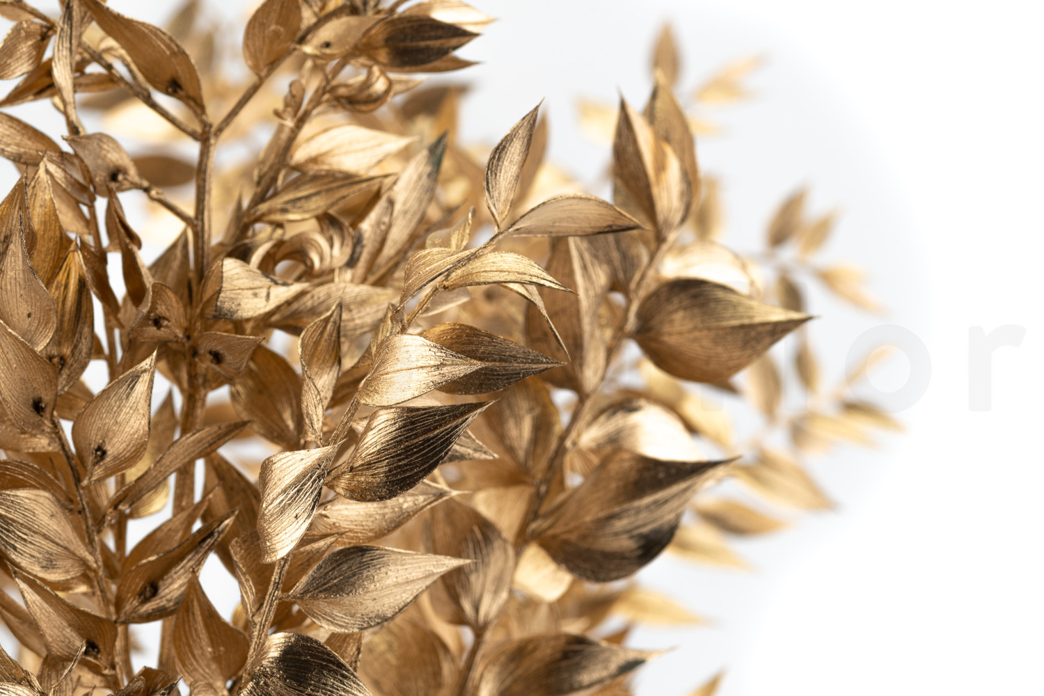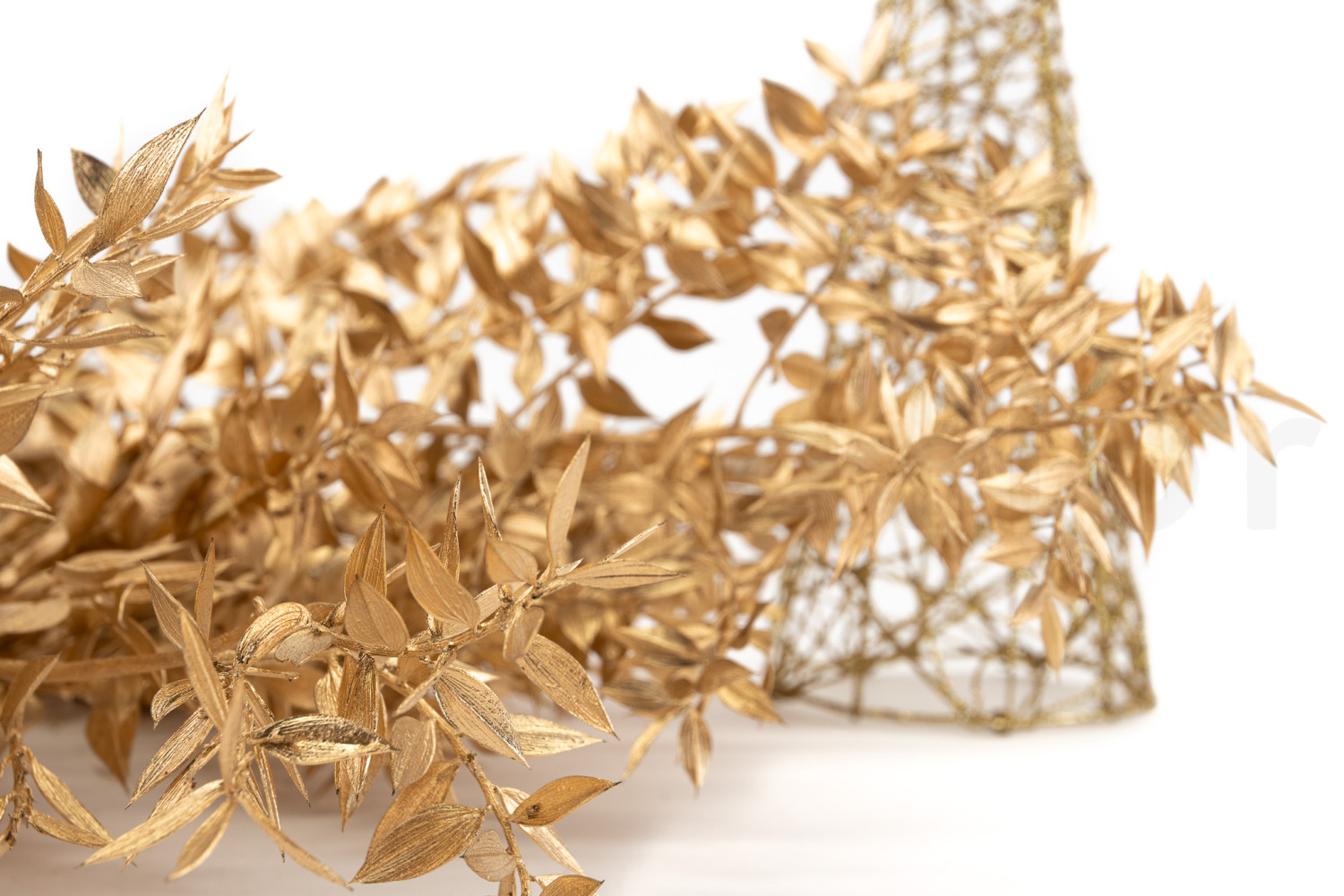 Que ce soit dans des compositions florales, des accessoires ou des décorations de table, le doré a toujours été un symbole de célébration, de succès et de prospérité. Lors des fêtes, cette couleur est également utilisée pour rappeler la magie et l’éclat de la saison hivernale, notamment lorsqu’elle est associée à des textures naturelles comme le ruscus.