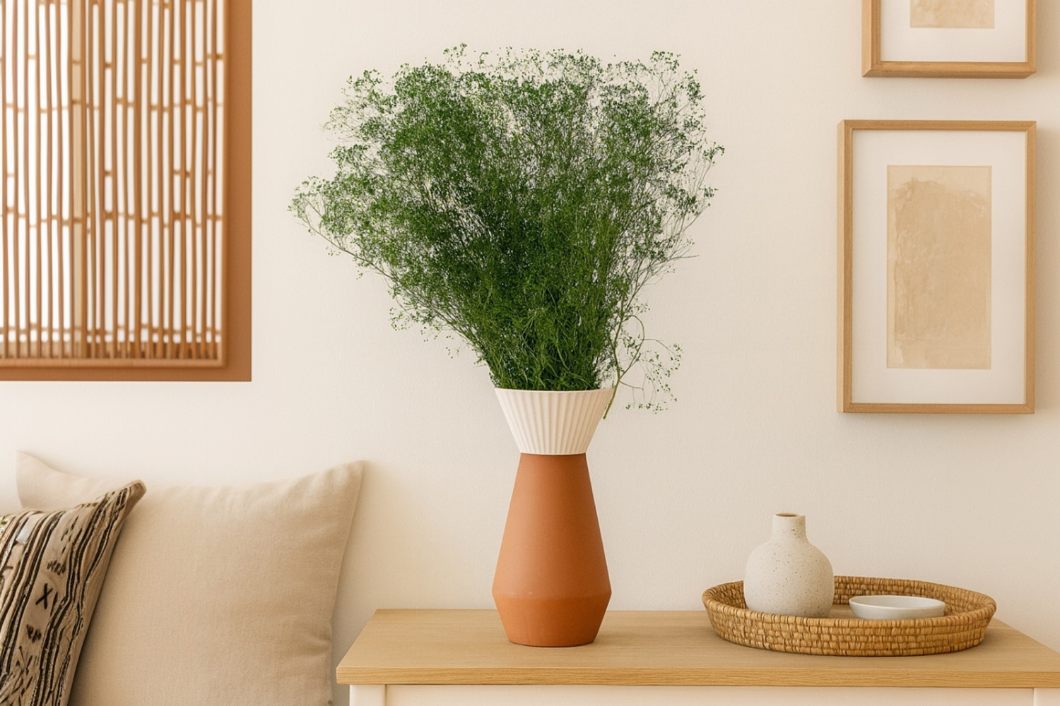 La couleur Eden Green du gypsophile mini stabilisé se marie facilement avec une variété de teintes, créant des combinaisons visuellement captivantes. Associé à des fleurs blanches comme les roses ou les dahlias, le gypsophile crée un contraste saisissant qui met en valeur sa propre couleur vibrante. Pour un look plus ton sur ton, il peut être combiné avec des nuances de vert plus clair ou des touches de jaune pâle pour créer une ambiance printanière et rafraîchissante.