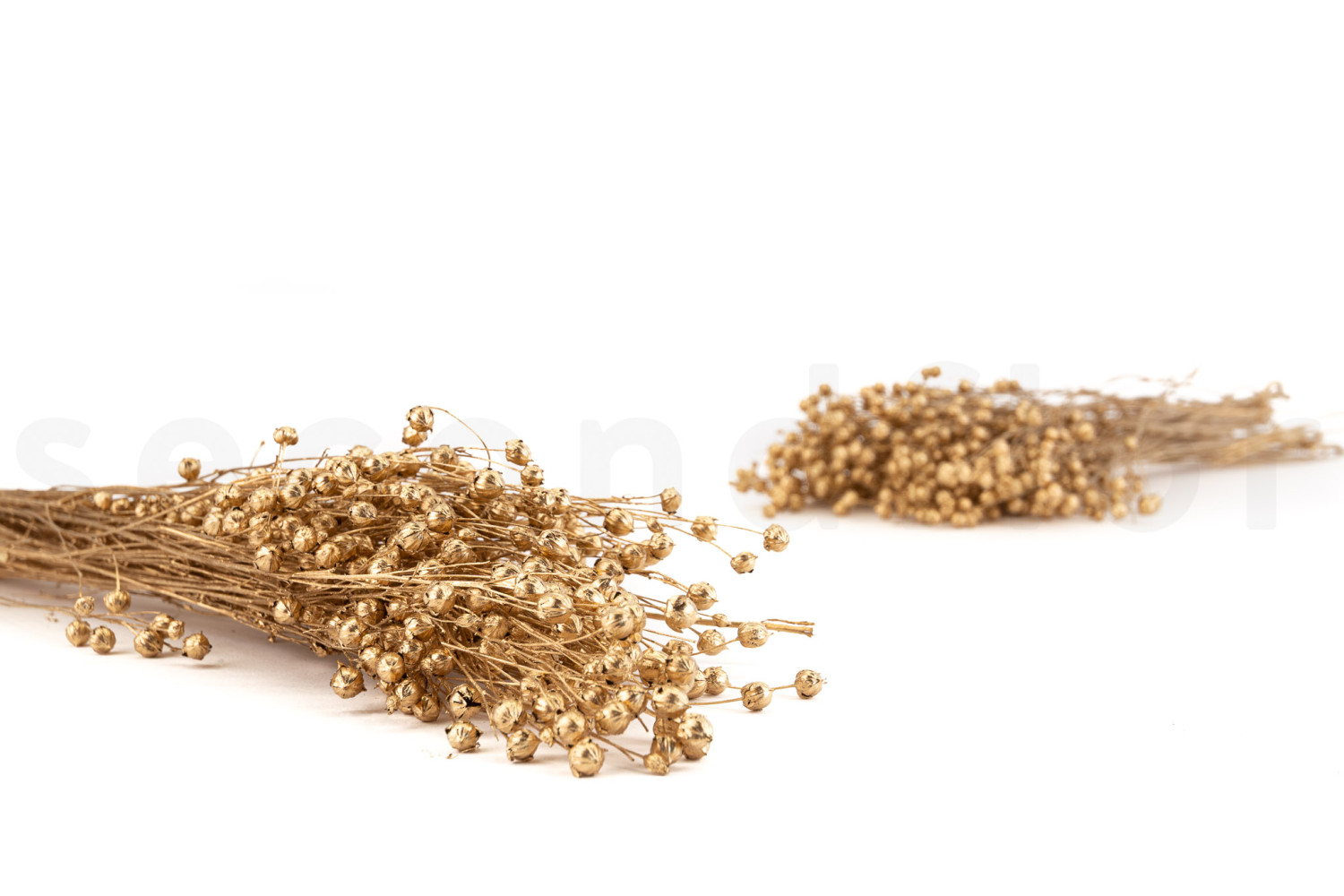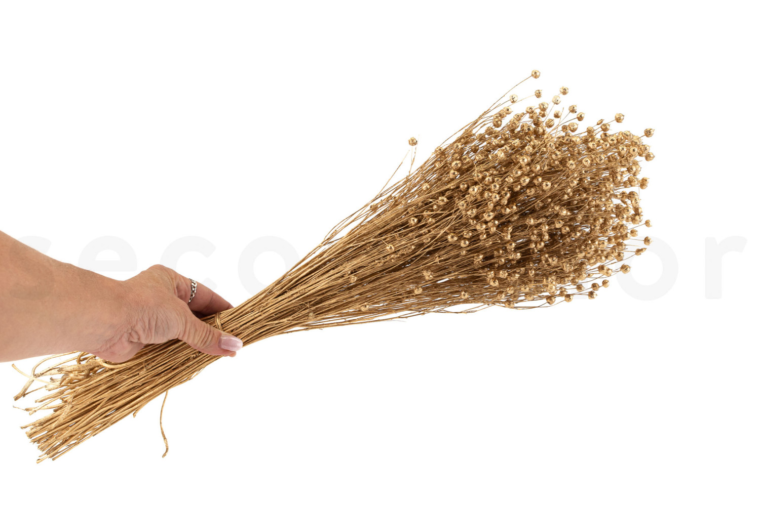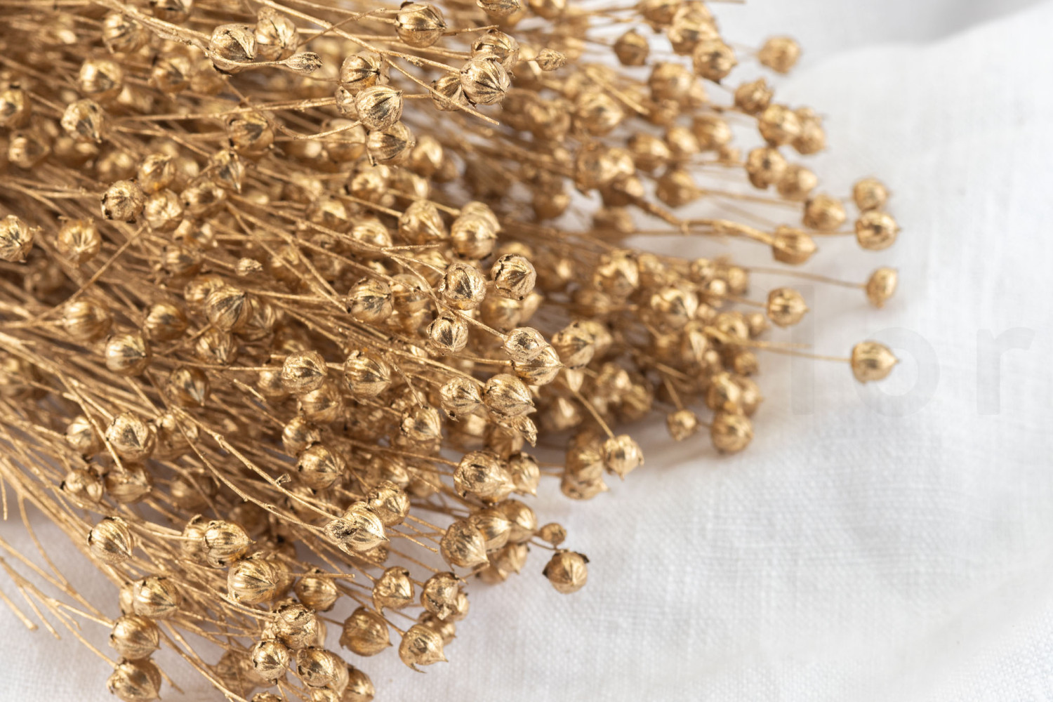 De plus, le lin doré se prête particulièrement bien aux compositions florales de type centre de table ou guirlandes pour les fêtes, où son éclat contribue à illuminer l’espace. En jouant avec des végétaux de différentes hauteurs et textures, comme le gypsophile stabilisé ou les brins de lavande, le lin peut également être intégré dans des arrangements plus complexes, tout en gardant une harmonie générale. Le lin doré est un choix polyvalent, apportant volume, forme et éclat à vos créations florales.