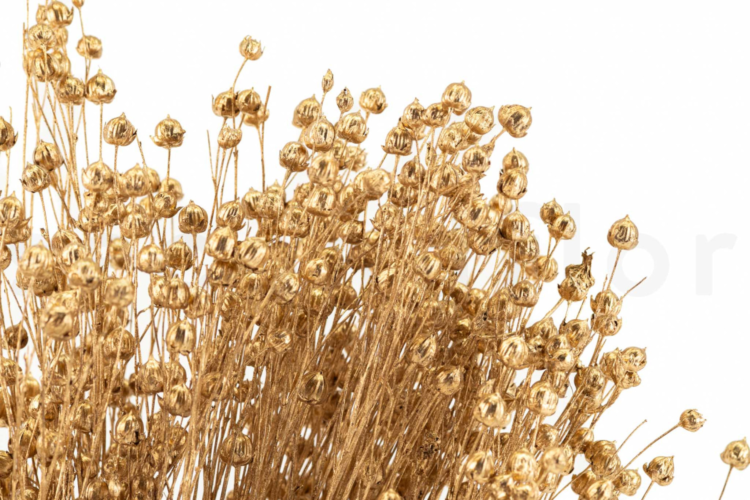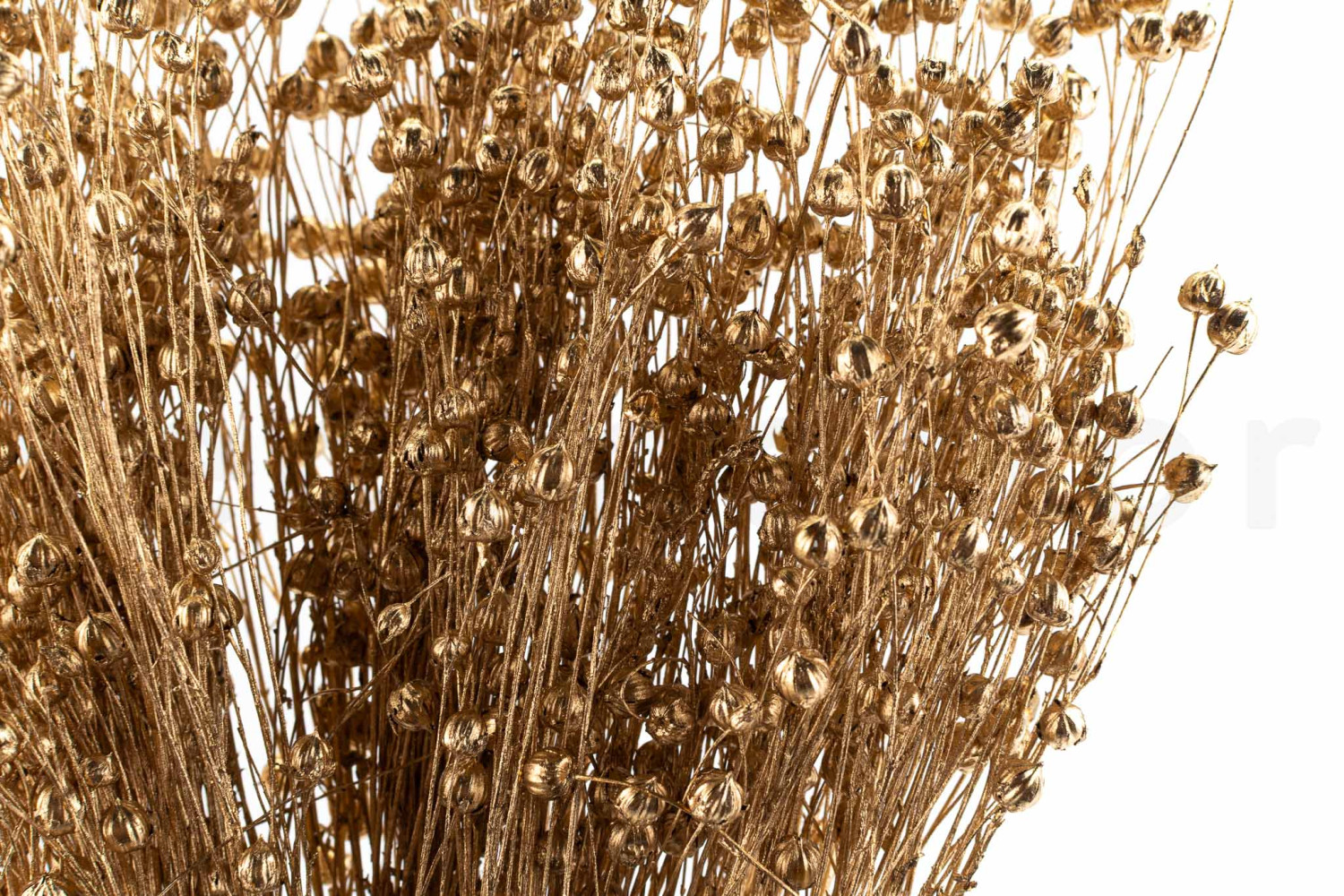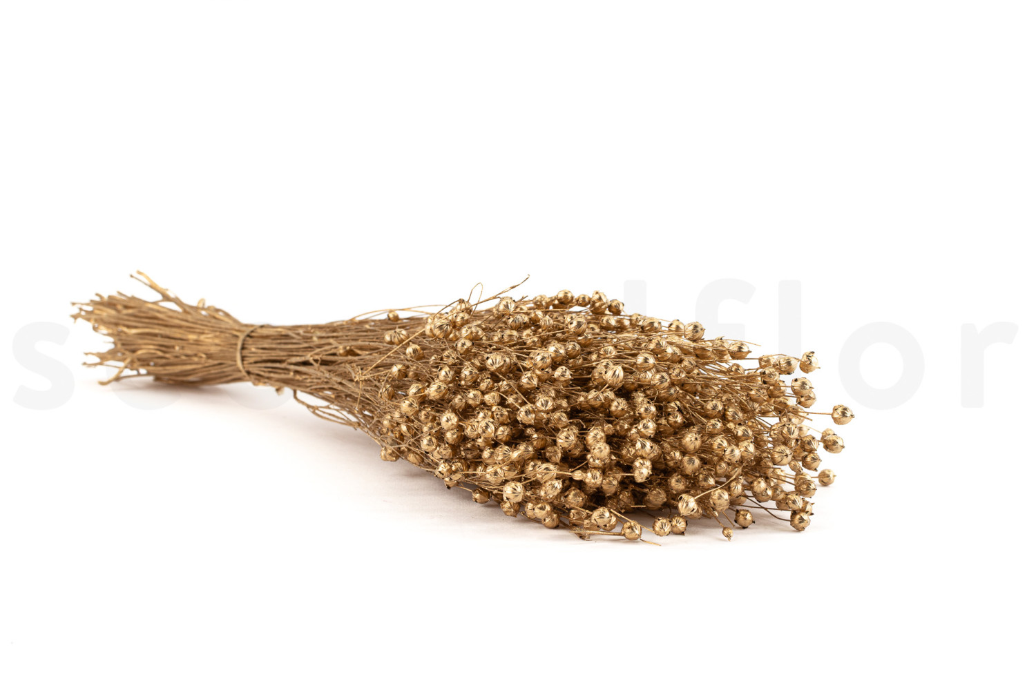 Le lin doré s'associe merveilleusement avec une large gamme de végétaux et de couleurs. Sa teinte métallique lui permet de s’intégrer facilement dans des compositions classiques ou modernes. Par exemple, il peut être utilisé en complément d’eucalyptus ou de fougères pour une décoration naturelle et minimaliste. Ses petites boules dorées peuvent aussi contraster élégamment avec des fleurs plus opulentes, comme les pivoines ou les roses, apportant une touche scintillante sans surcharger la composition.