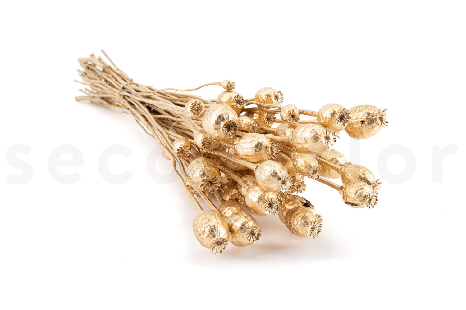 Une fois séché, le pavot conserve sa structure robuste et sa forme sphérique. Habillé d’une finition dorée, il devient un véritable bijou végétal. Ni fragile, ni ostentatoire, le pavot doré traverse les saisons et s’intègre dans tous les styles — du design minimaliste aux ambiances les plus opulentes.