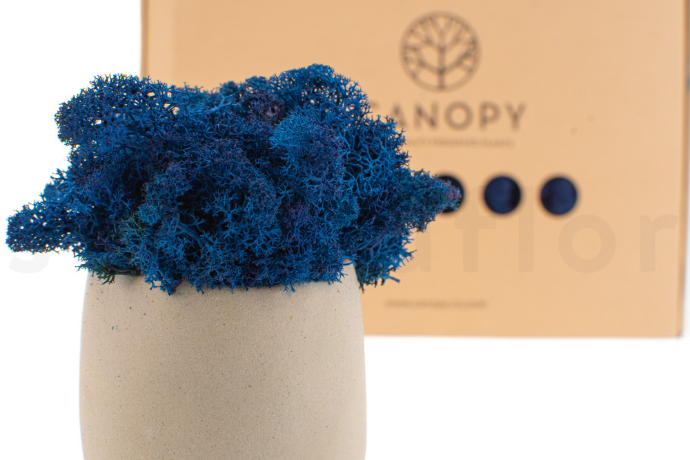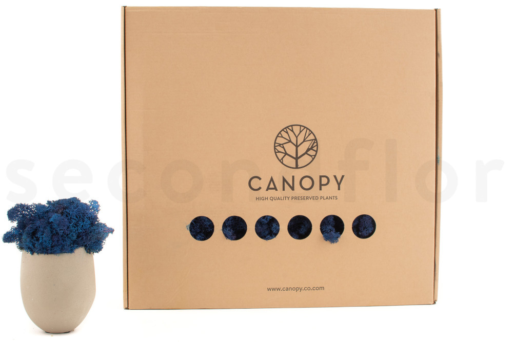 Découvrez nos Lichen Préservé - Boite - Royal Blue, disponibles sur SecondFlor, votre grossiste en fleurs et plantes stabilisées.