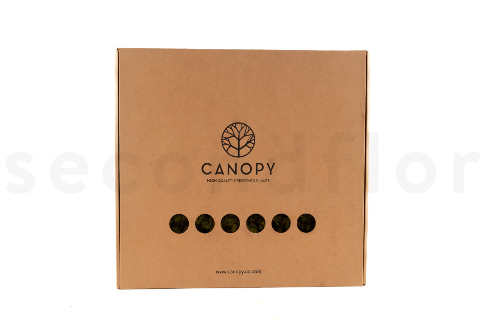 Conditionnement : Une boite carton de 38 x 37 x 9 cm. Contient environ 1 kg de lichen. Emballage écologique 100% carton. Avec ses ouvertures design, cet emballage est idéal pour la vente en boutique.