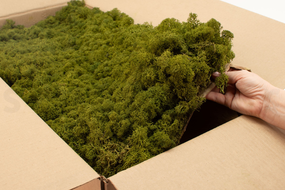 Découvrez nos Lichen Préservé - Carton vrac - Medium Green, disponibles sur SecondFlor, votre grossiste en fleurs et plantes stabilisées.