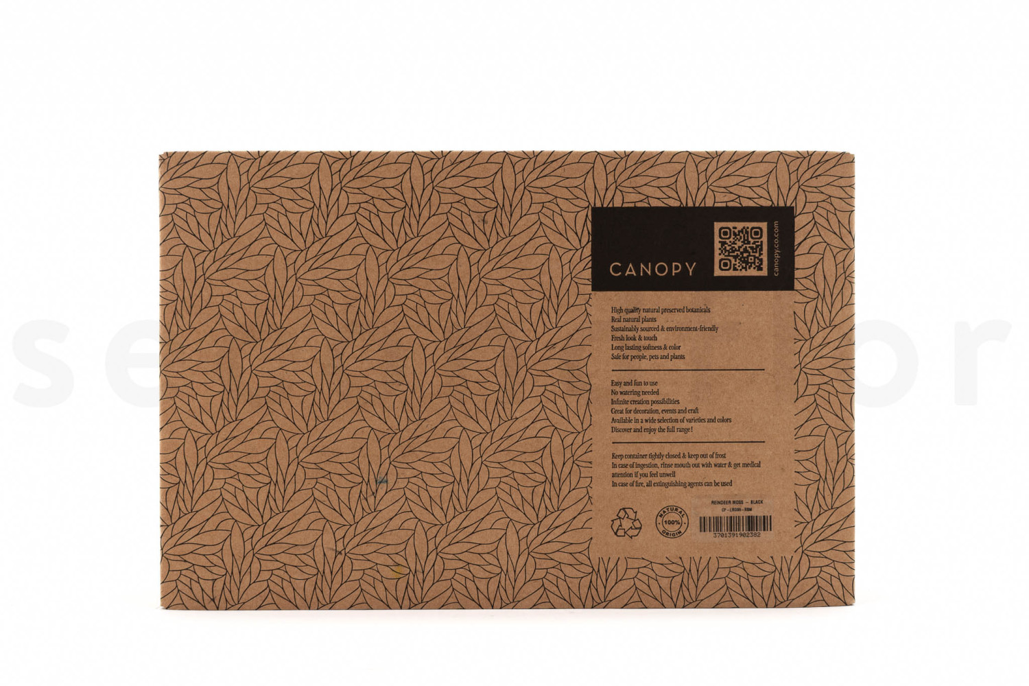 Conditionnement : Une boite carton de 29 x 19 x 6,5 cm. Une boîte kraft au design feuillage, compacte et pratique, avec couvercle vitrine. Idéale pour les créations petit format ou pour être revendue directement en boutique.
