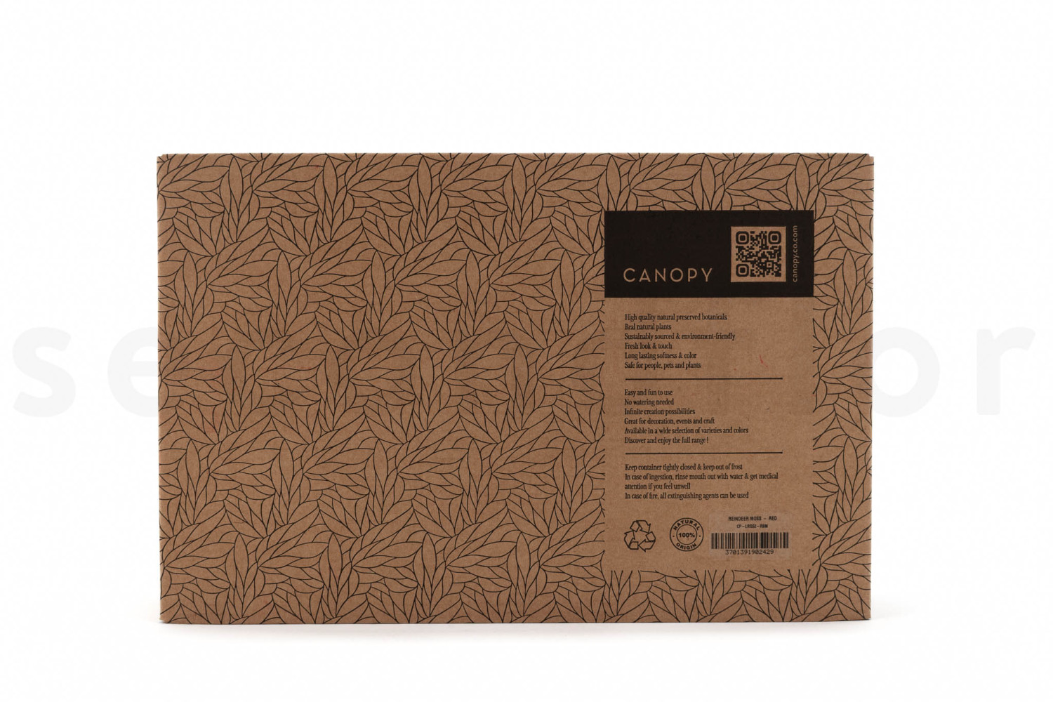 Conditionnement : Une boite carton de 29 x 19 x 6,5 cm. Une boîte kraft au design feuillage, compacte et pratique, avec couvercle vitrine. Idéale pour les créations petit format ou pour être revendue directement en boutique.