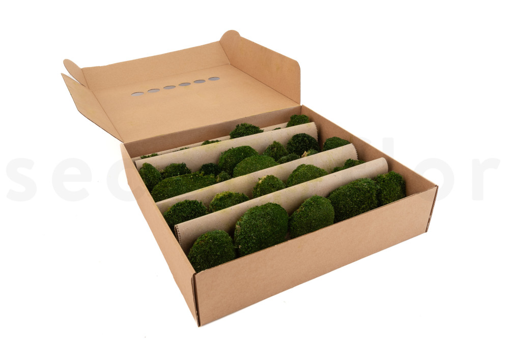 Découvrez nos Mini Mousse Boule Préservée - Boite - Nature Green, disponibles sur SecondFlor, votre grossiste en fleurs et plantes stabilisées.