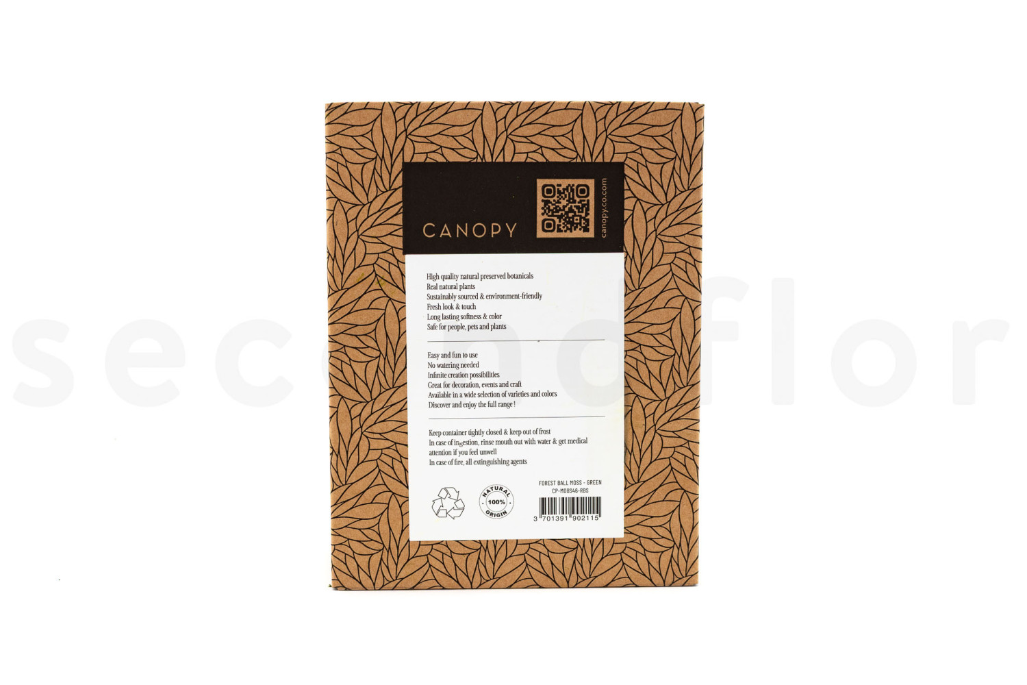 Conditionnement : Une boite carton de 19 x 14,5 x 6,5 cm. Une boîte kraft au design feuillage, compacte et pratique, avec couvercle vitrine. Idéale pour les créations petit format ou pour être revendue directement en boutique.