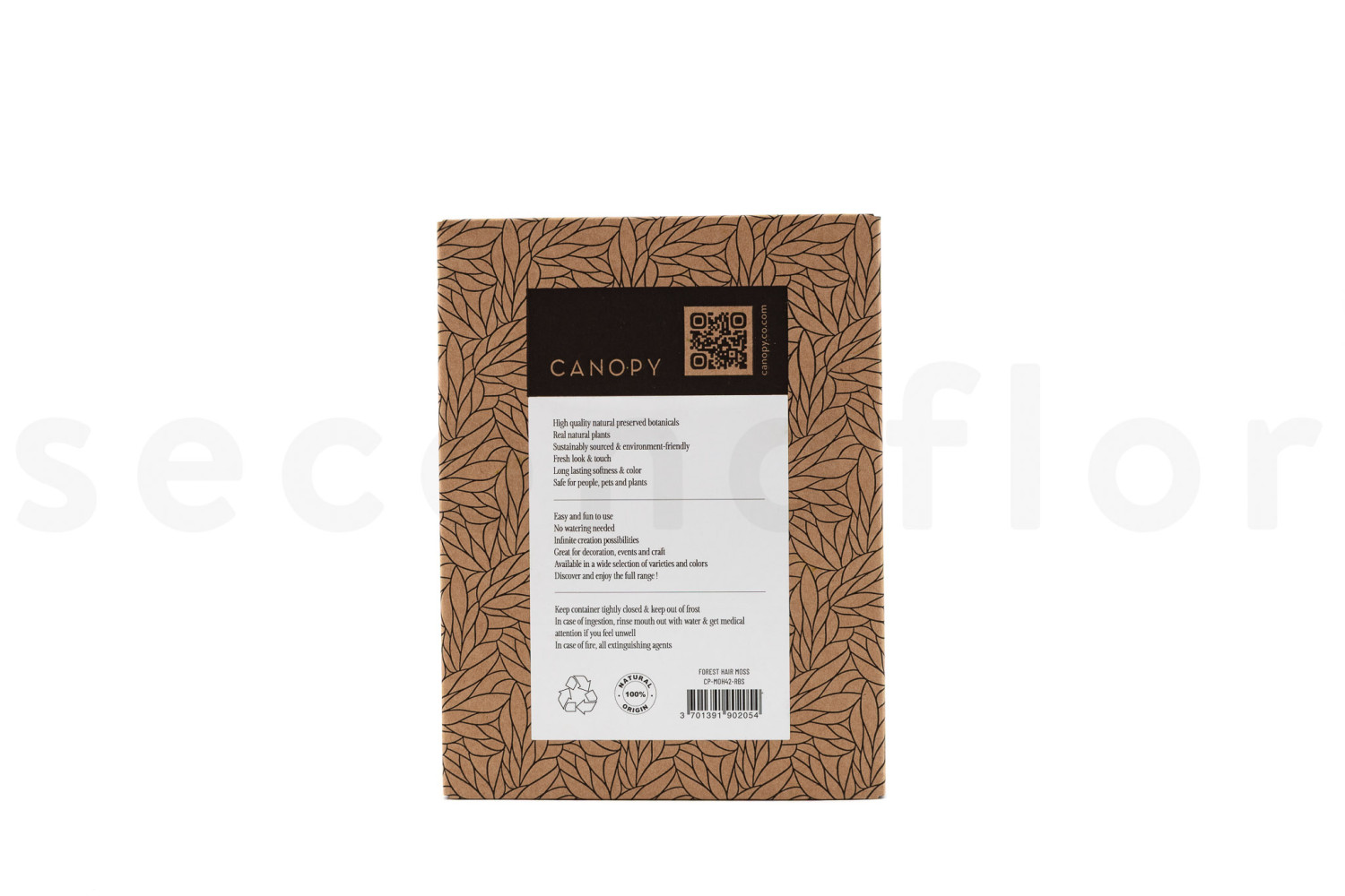 Conditionnement : Une boite carton de 19 x 14,5 x 6,5 cm. Une boîte kraft au design feuillage, compacte et pratique, avec couvercle vitrine. Idéale pour les créations petit format ou pour être revendue directement en boutique.