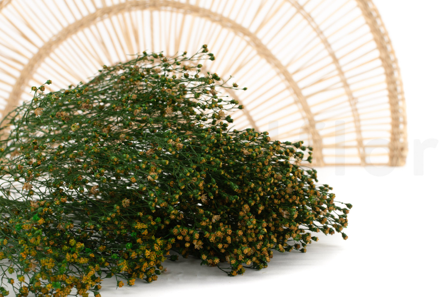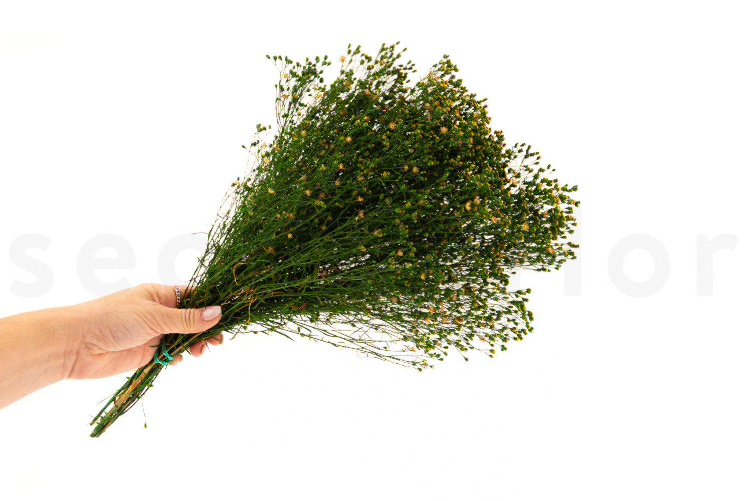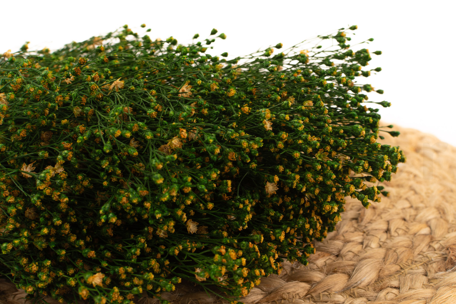 Le broom stabilisé vert est un excellent choix en tant que filler dans vos compositions florales. Ce végétal, avec ses petites fleurs jaunes délicates, ajoute non seulement une touche de légèreté et de texture à vos bouquets, mais il crée également un contraste subtil grâce à son association de teintes naturelles. Le vert profond des tiges se marie parfaitement avec les petites fleurs jaunes, offrant ainsi un effet visuel équilibré et harmonieux.
