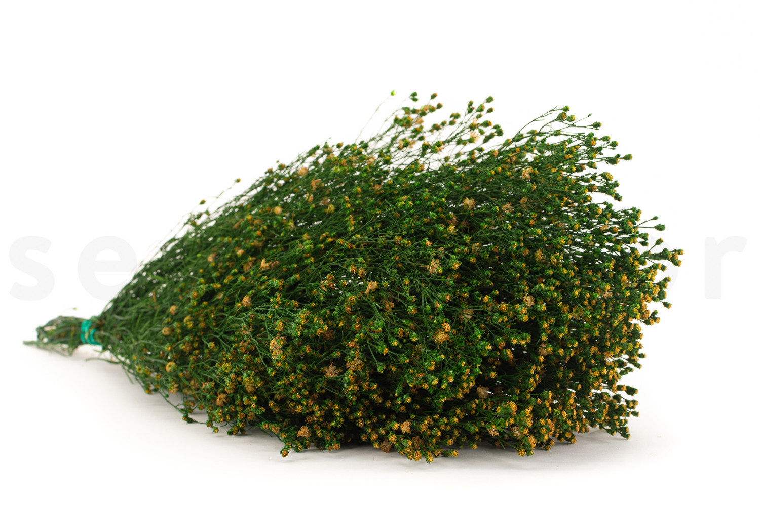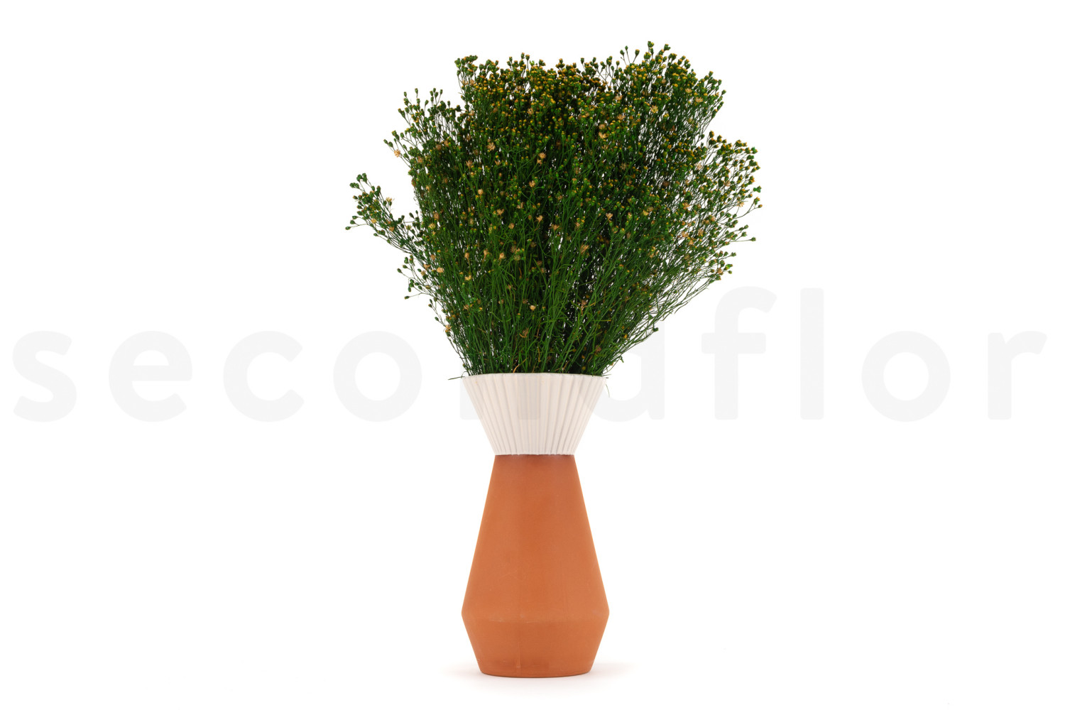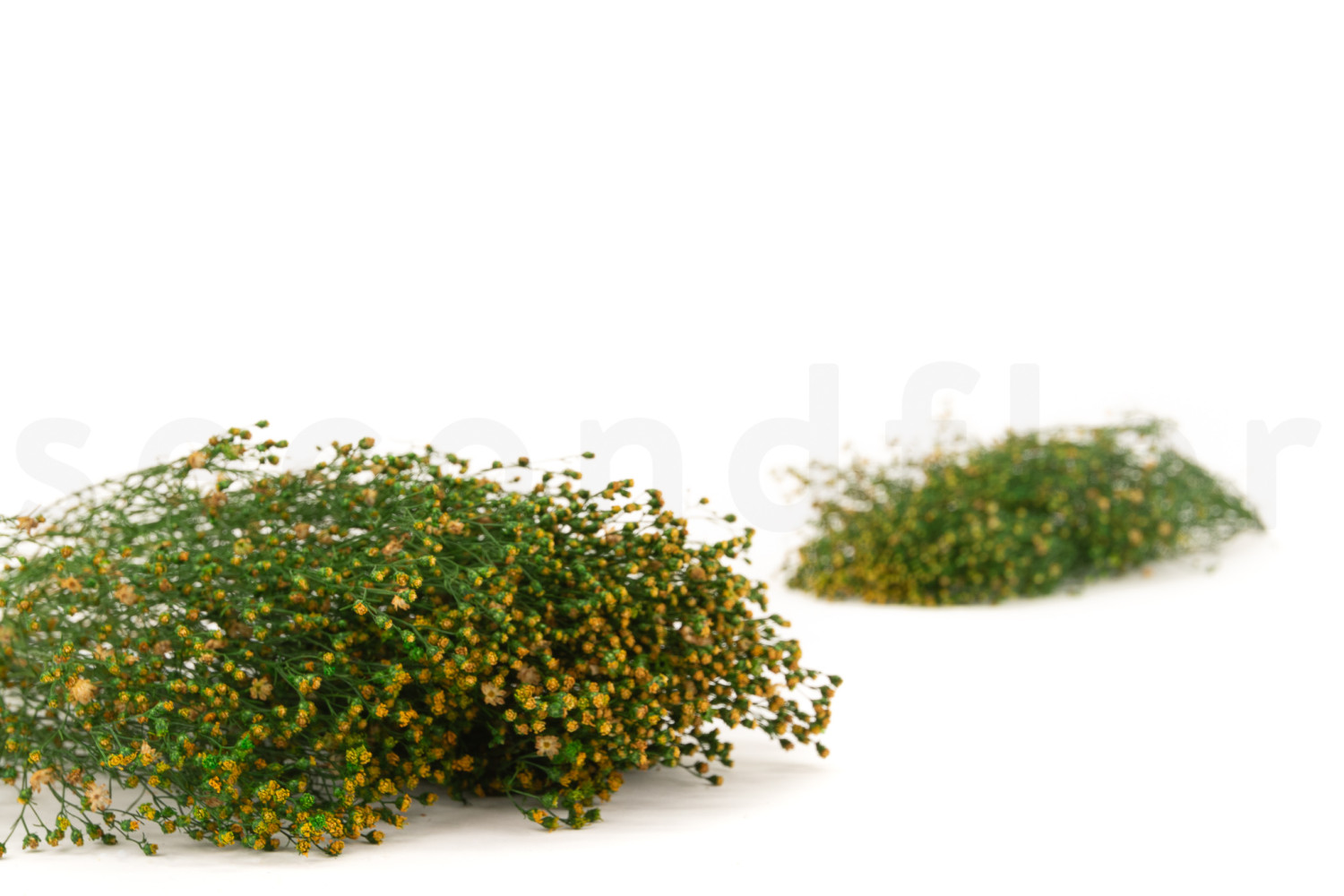 Le broom stabilisé vert est un excellent choix en tant que filler dans vos compositions florales. Ce végétal, avec ses petites fleurs jaunes délicates, ajoute non seulement une touche de légèreté et de texture à vos bouquets, mais il crée également un contraste subtil grâce à son association de teintes naturelles. Le vert profond des tiges se marie parfaitement avec les petites fleurs jaunes, offrant ainsi un effet visuel équilibré et harmonieux.