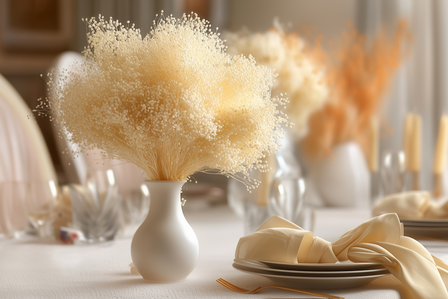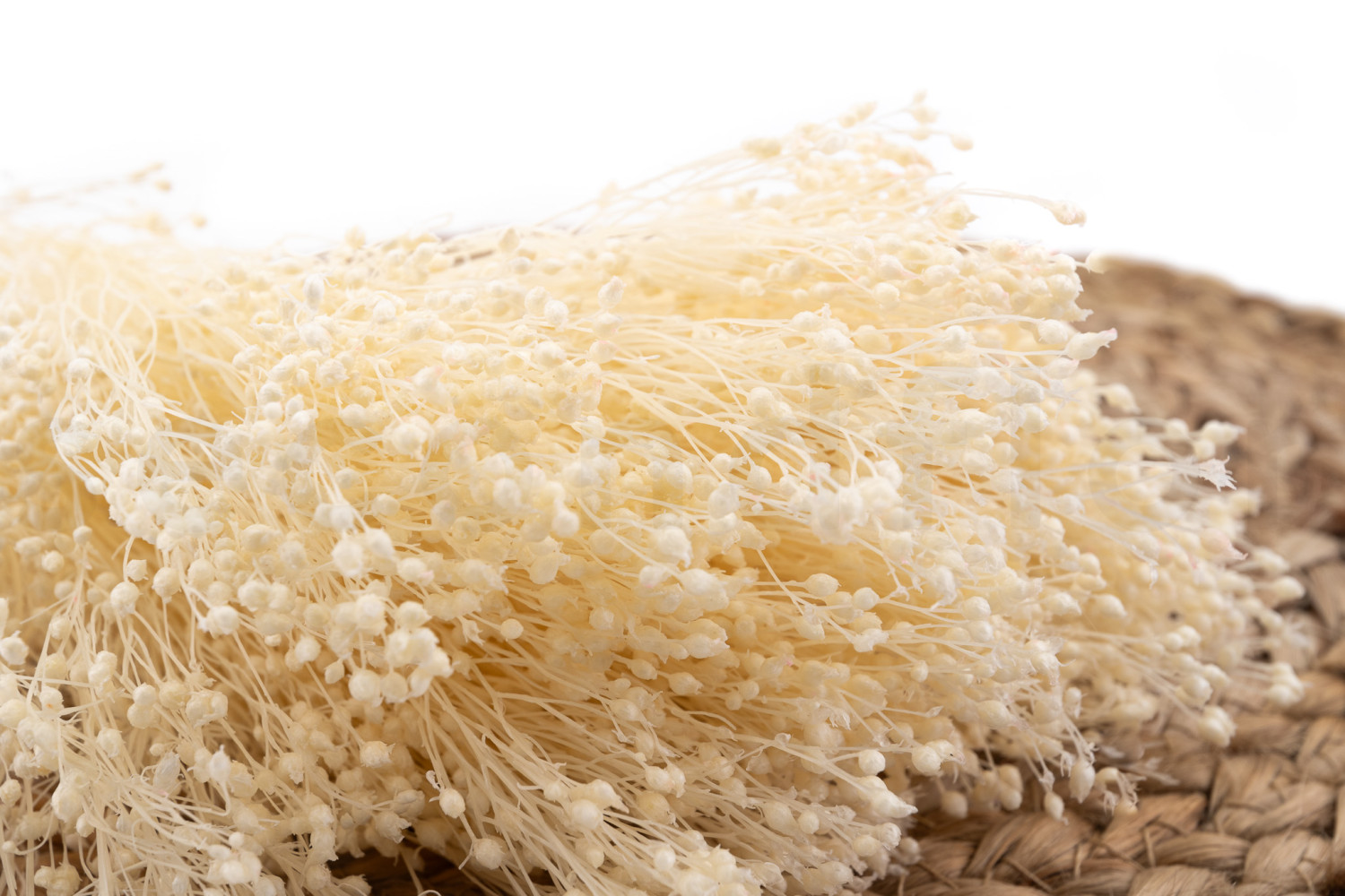 Le broom préservé blanc, avec ses petites fleurs en forme de boules, est idéal pour apporter du graphisme à vos bouquets.