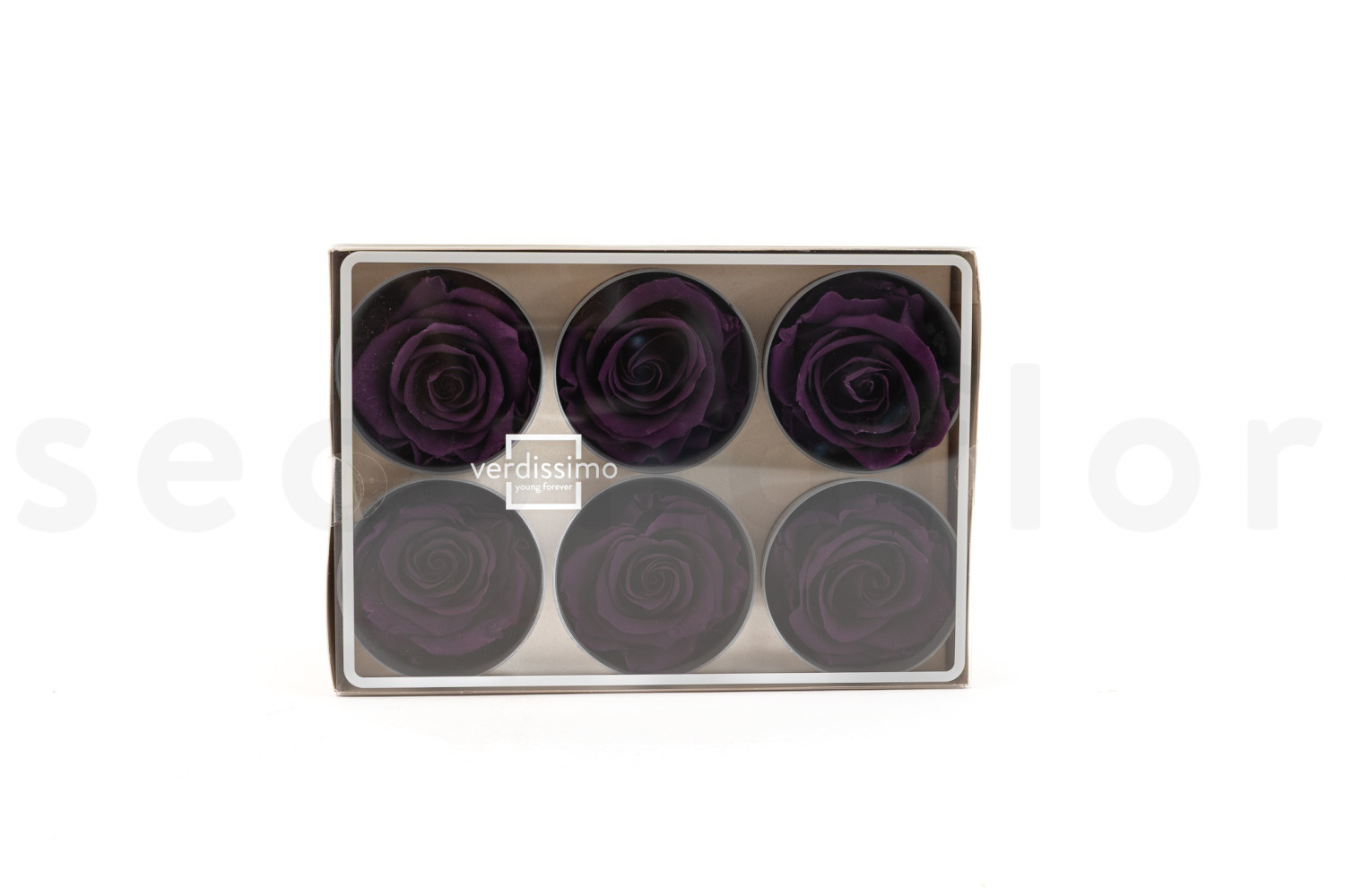 Description produit Rose stabilisée Verdissimo L - Boîte de 6 - Pourpre
