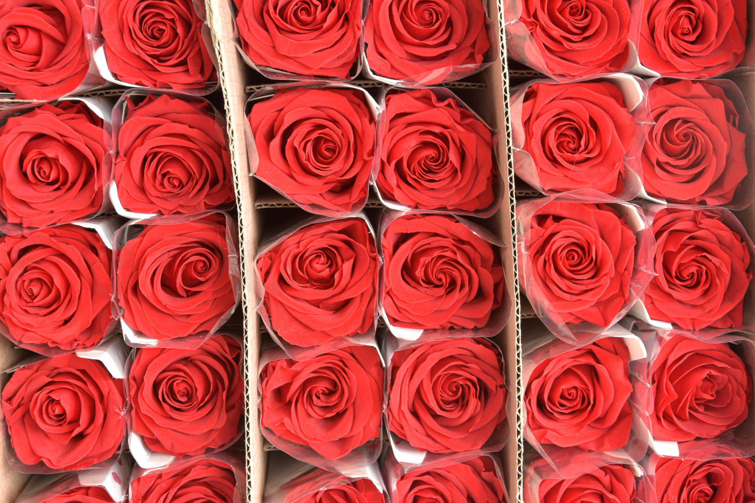 Retrouvez la rose sur tige et son sachet de protection individuel dans un carton de 30 unités.