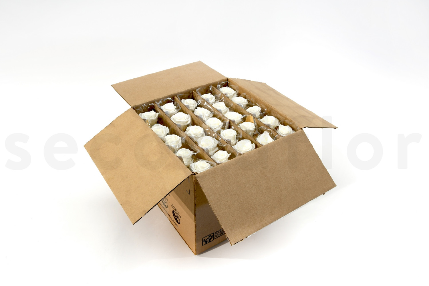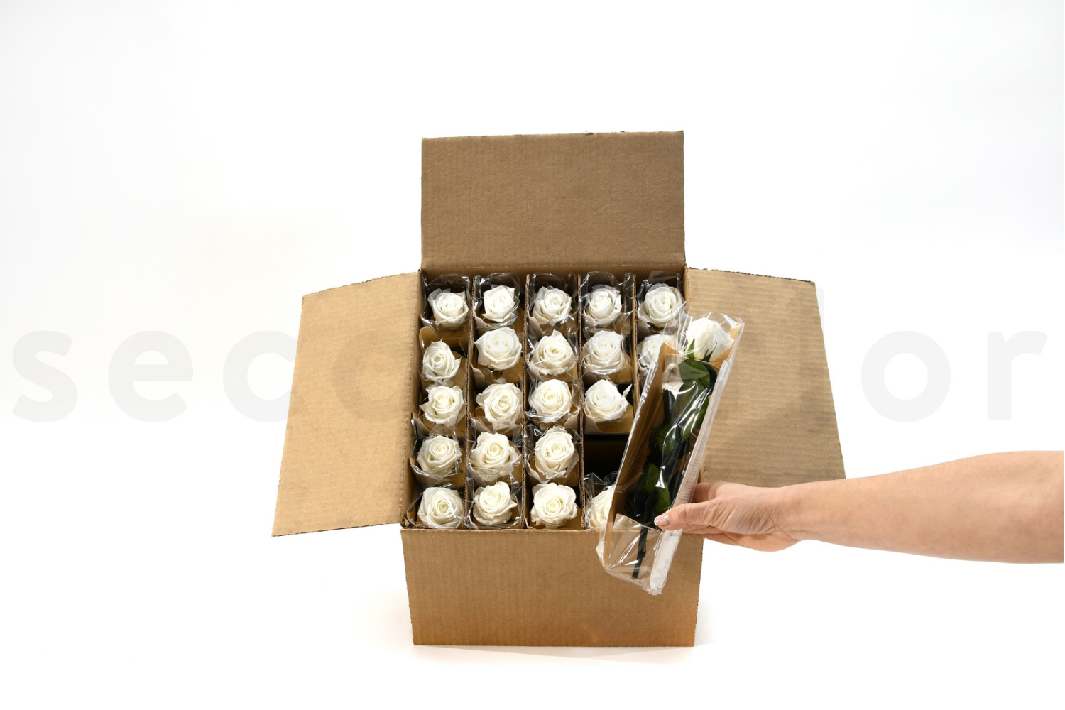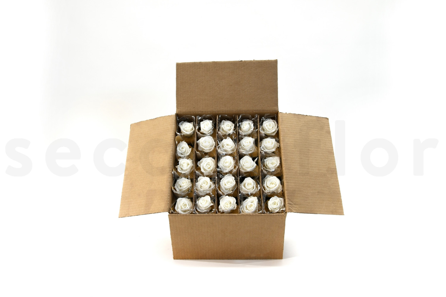 Découvrez nos Roses sur tige stabilisées vrac 30cm - 25 Unités - Blanc, disponibles sur SecondFlor, votre grossiste en fleurs et plantes stabilisées.