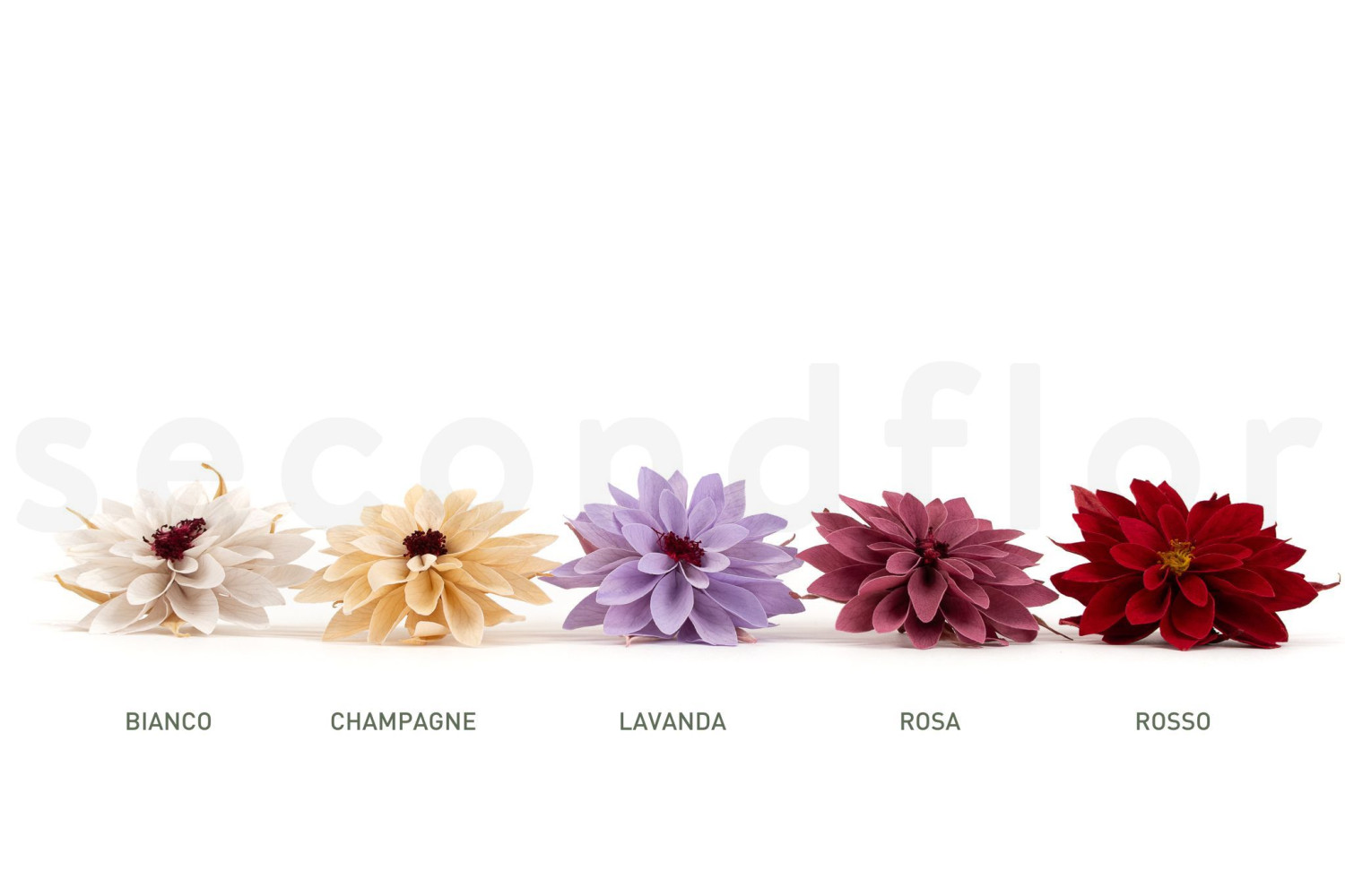 Le dalie si distinguono per la loro caratteristica forma geometrica, con petali ordinati e disposti in file concentriche. Questa struttura simmetrica conferisce al fiore un aspetto grafico e suggestivo, aggiungendo una dimensione artistica a qualsiasi composizione floreale. Le dalie stabilizzate mantengono questa caratteristica forma geometrica, che le rende un'opzione ideale per chi cerca un'estetica moderna e contemporanea nelle proprie decorazioni floreali.
