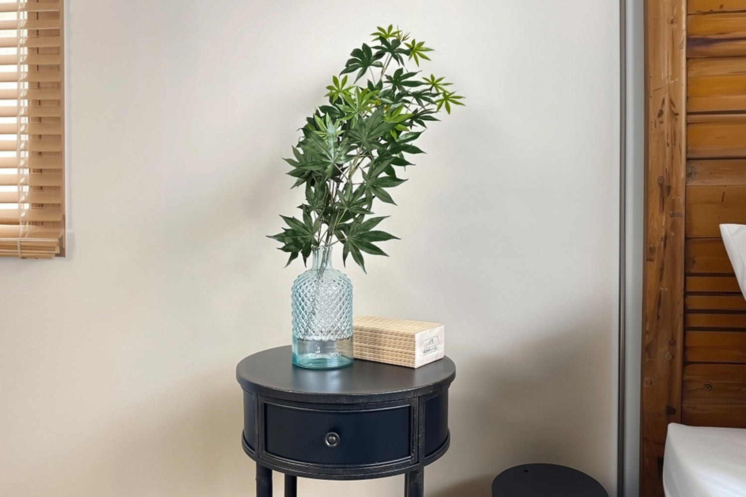 Applicazioni: Questo ramo di cannabis artificiale può essere inserito in vetrine o pareti vegetali.